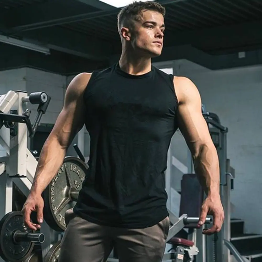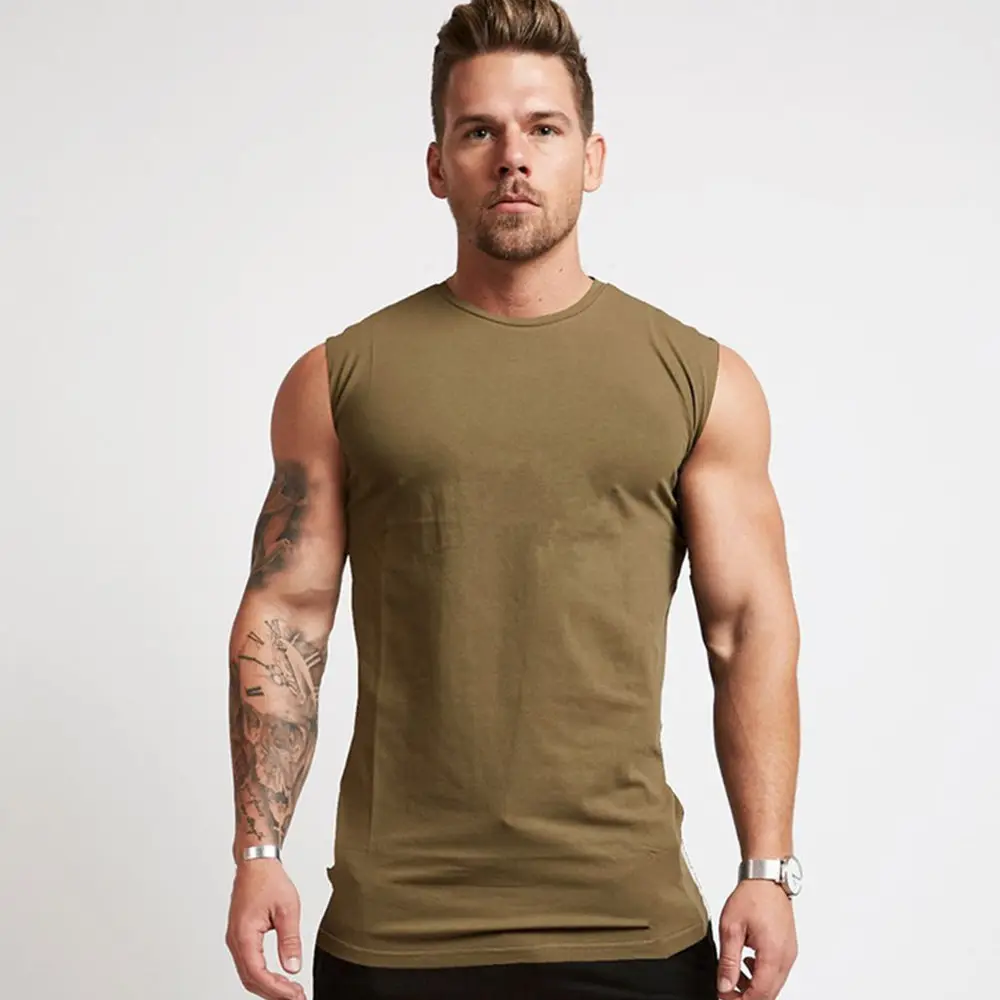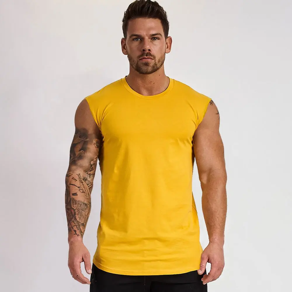 Майка мужская для спортзала, тренировочная хлопковая рубашка без рукавов для фитнеса и бодибилдинга, повседневный однотонный жилет, лето