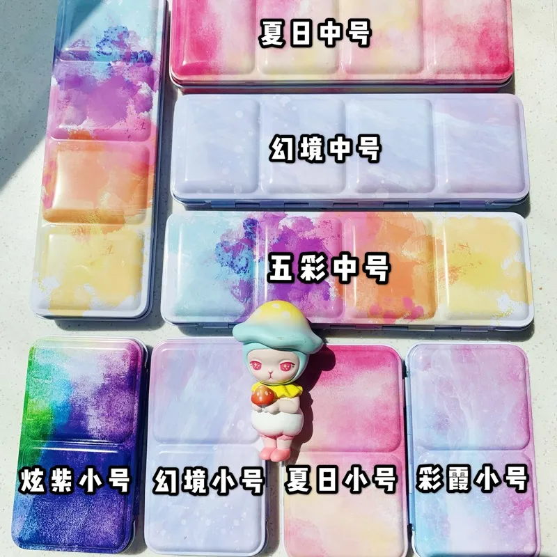 Акварельной коробки разъем карты железный ящик пустая коробка акварельных красок коробка для хранения три раза на плоской подошве ярких цветов жестяная коробка