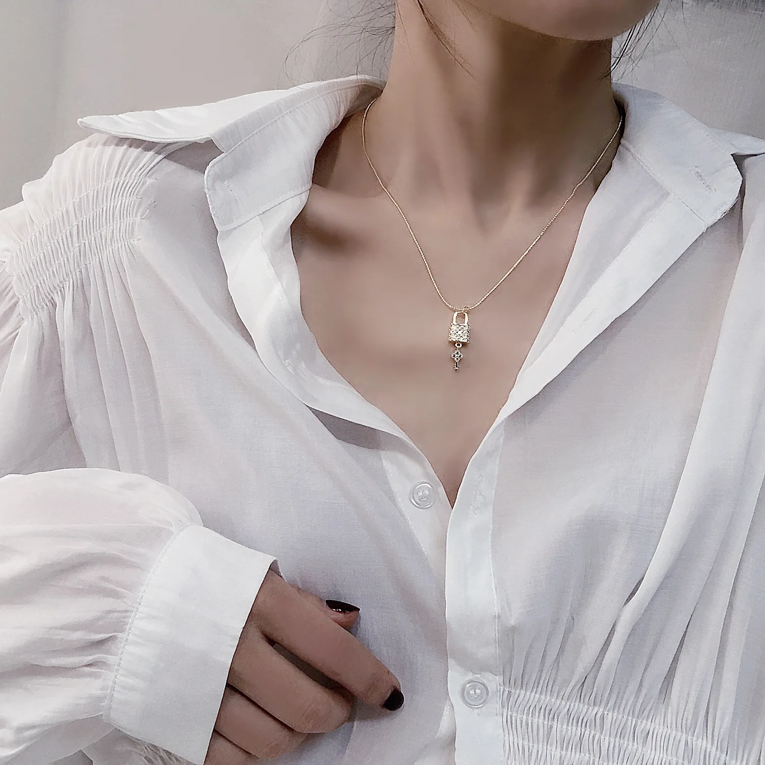 Женская цепочка с подвеской-замком, ожерелье золотого цвета с кулон...
