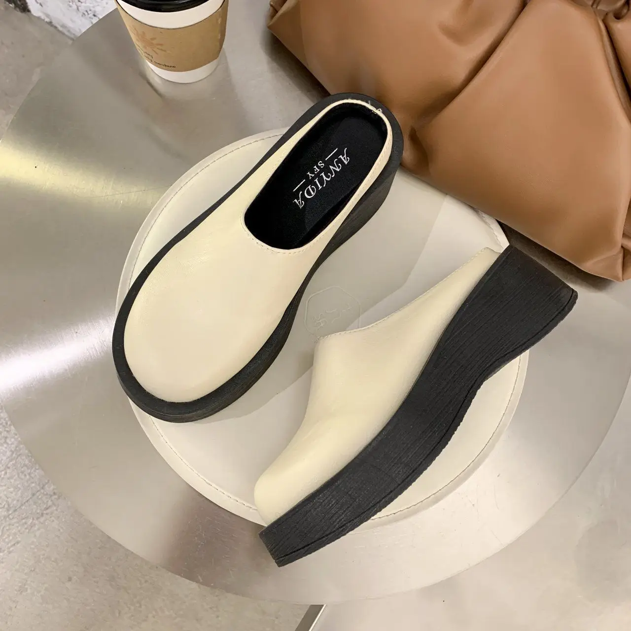 Туфли женские на высоком каблуке, шлепанцы на платформе, сланцы, на танкетке, резиновая обувь из искусственной кожи, Ретро стиль, летняя обувь