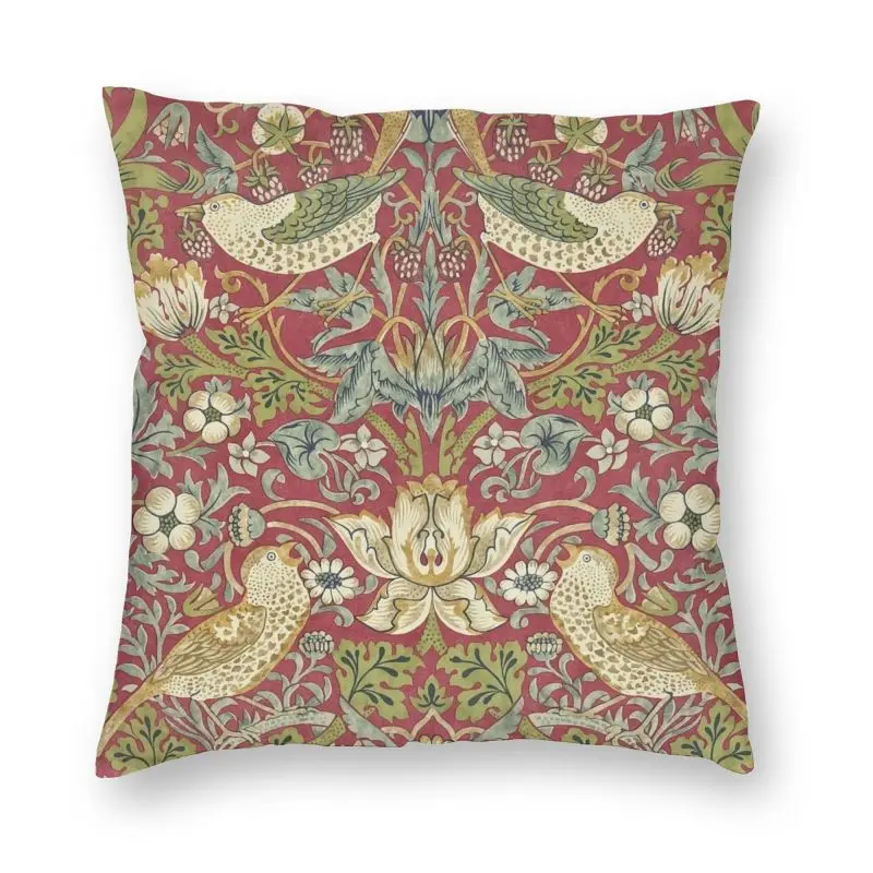 Чехол для диванной подушки с изображением клубники Вильяма Морриса, красного цвета, 40x40