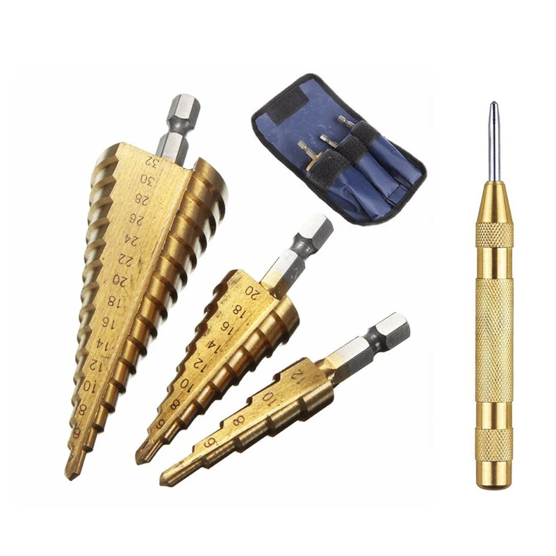 3 шт., набор ступенчатых конусных Сверл из быстрорежущей стали, метрический резак для металлических отверстий 4-12/20/32 мм, 1/4 дюйма, металлический шестигранный конус с титановым покрытием