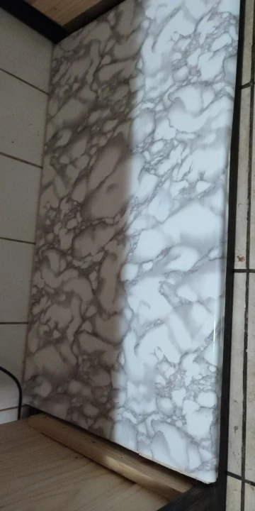 Очень красивое красивое качество, я установил его в ванной, над раковиной вместо традиционной керамики, очень шикарно и легко установить и чистить, потому что он пластифицирован.