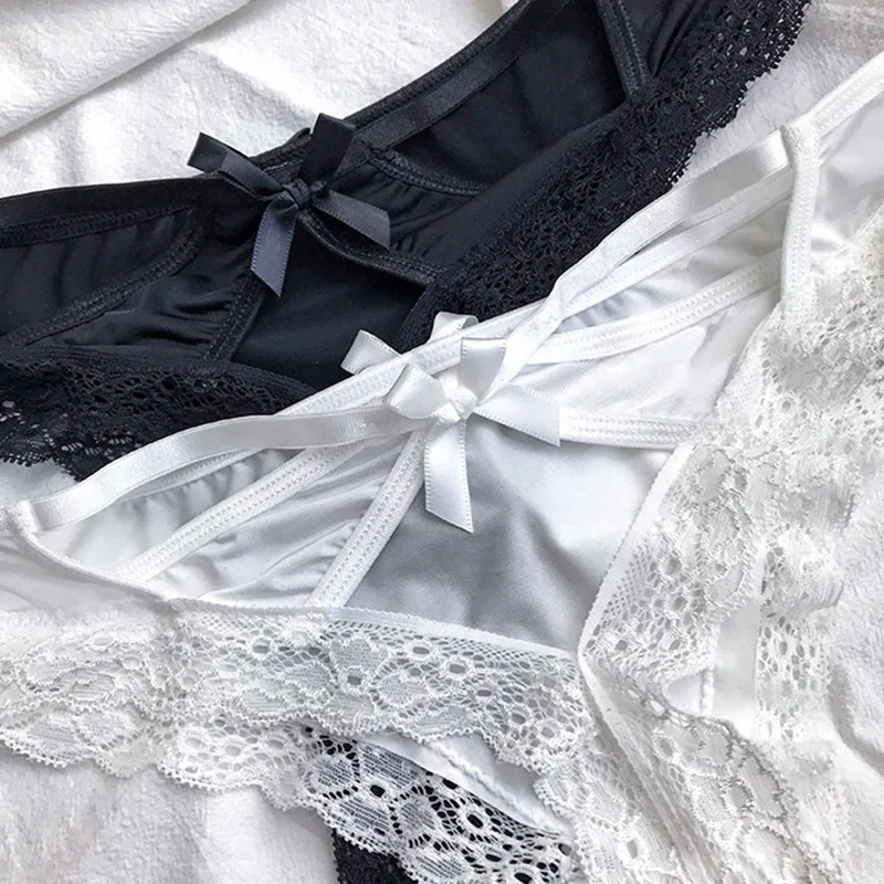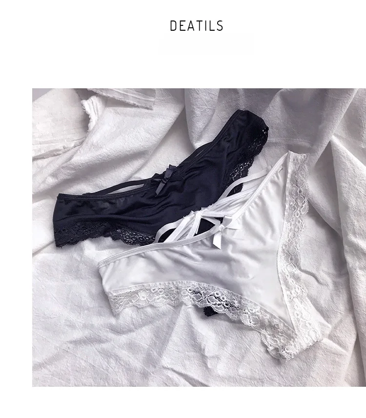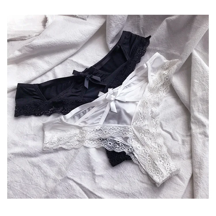 Женские кружевные трусики-стринги с бантом, бесшовные, из хлопка