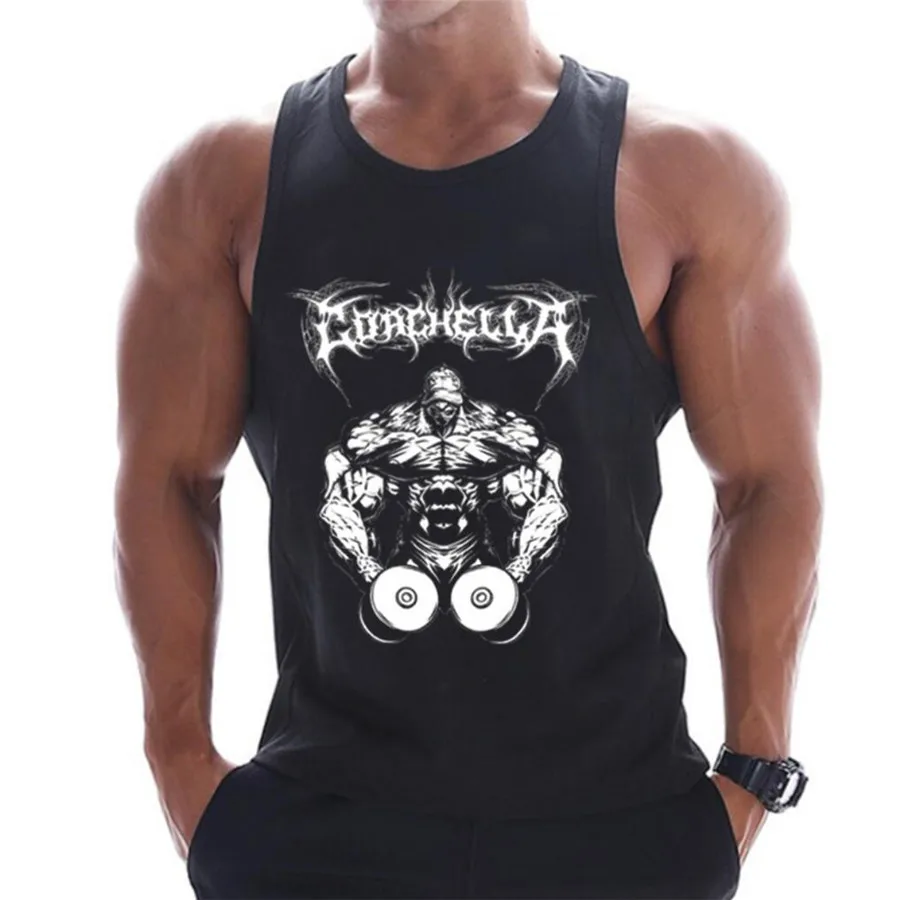 Майка мужская с принтом, хлопок, рубашка без рукавов для бодибилдин...