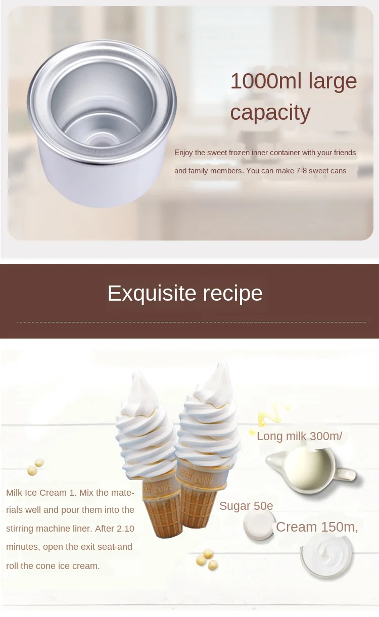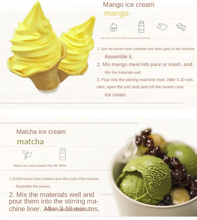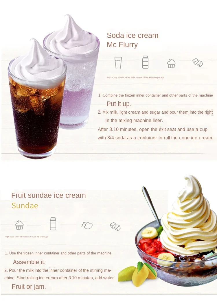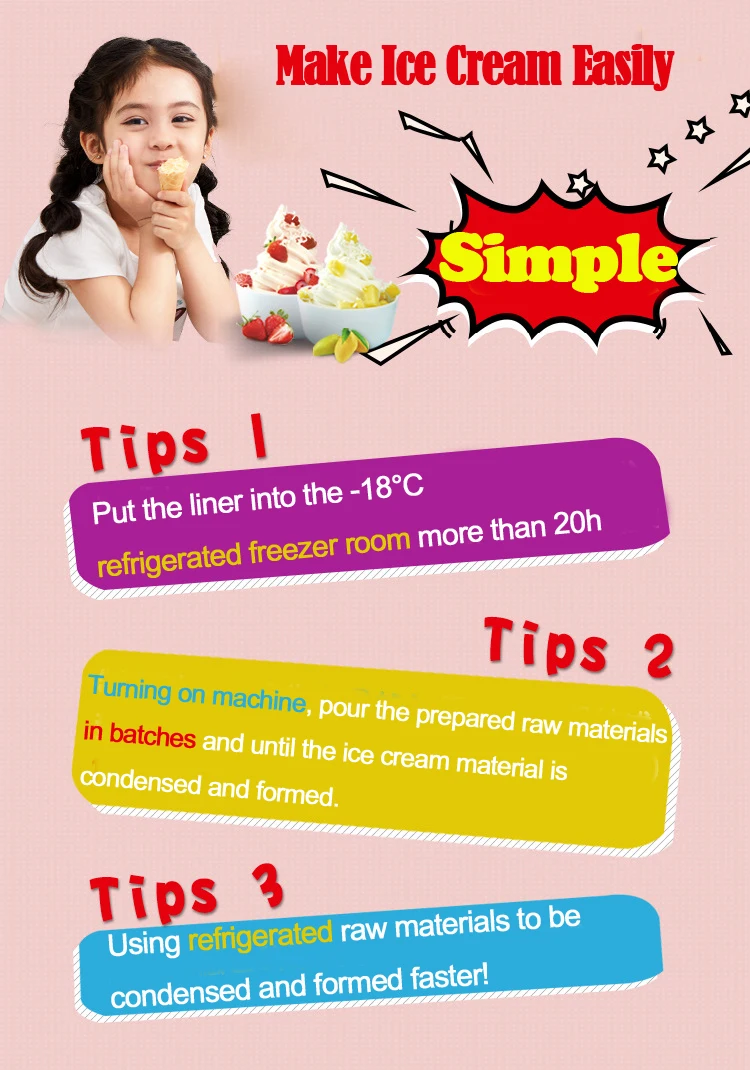 Примечание: Эта модель является бытовой машиной. Внутренний бак может быть заморожен только один раз, и может сделать около 8 конусов одновременно.
