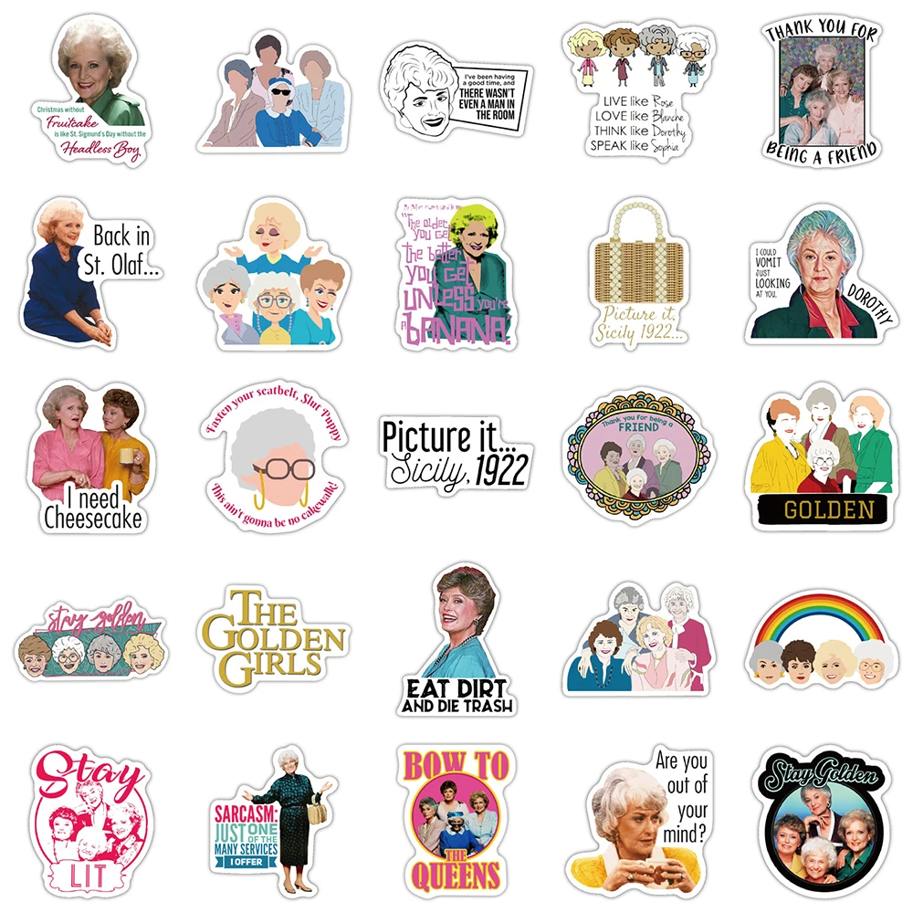 50 шт. Золотой Стикеры для девочек Классические комедийные 80 х забавные ТВ серии граффити Стикеры "сделай сам" для чемодан ноутбук канцелярских принадлежностей