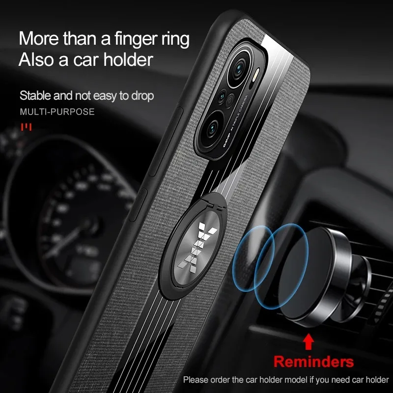 Для Xiaomi Poco F3 чехол с кольцом-держателем тканевый жесткий чехол Мягкая Рамка тканевый текстурный чехол для телефона для Xiaomi Pocophone Poko POCO F3