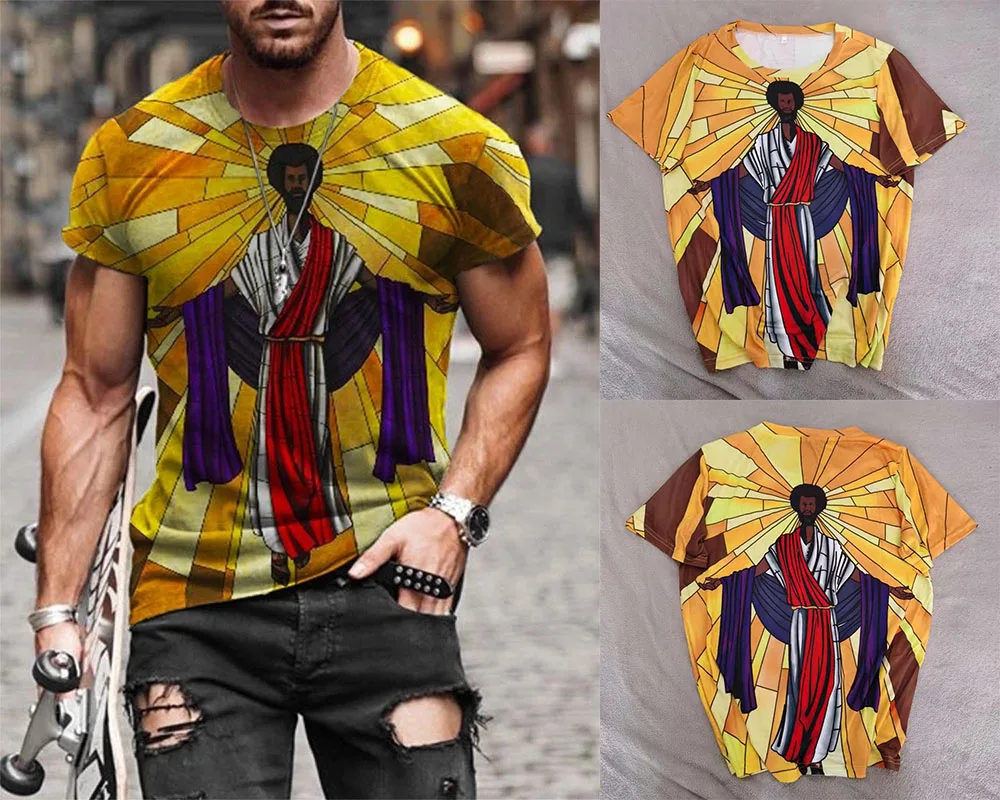 Мужская футболка с принтом Иисуса Христа, с коротким рукавом, с кру...