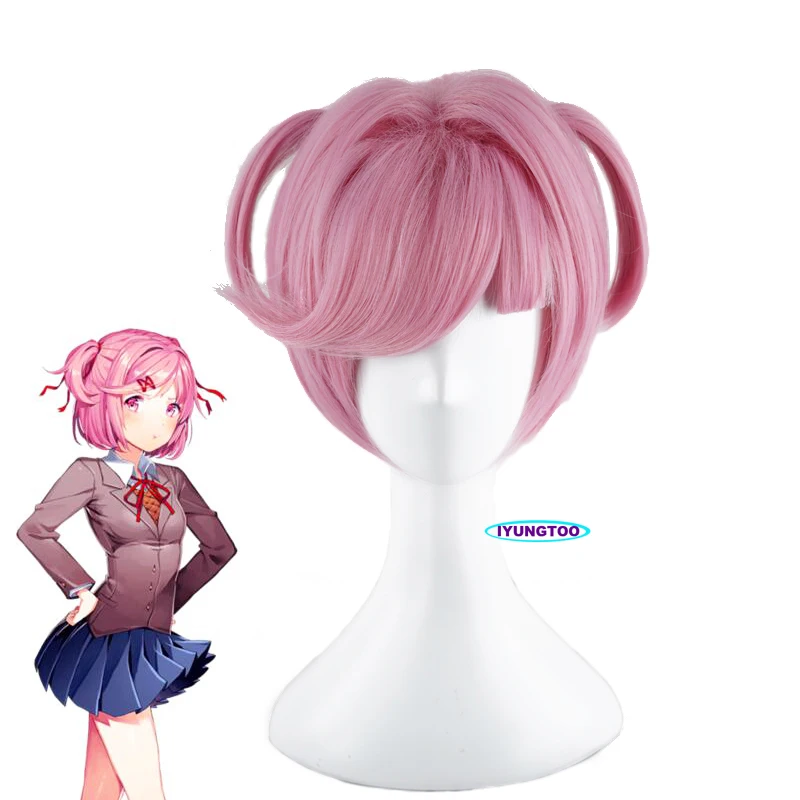 Игра DDLC Doki клуб Нацуки розовый короткий парик для Хэллоуина Кос...