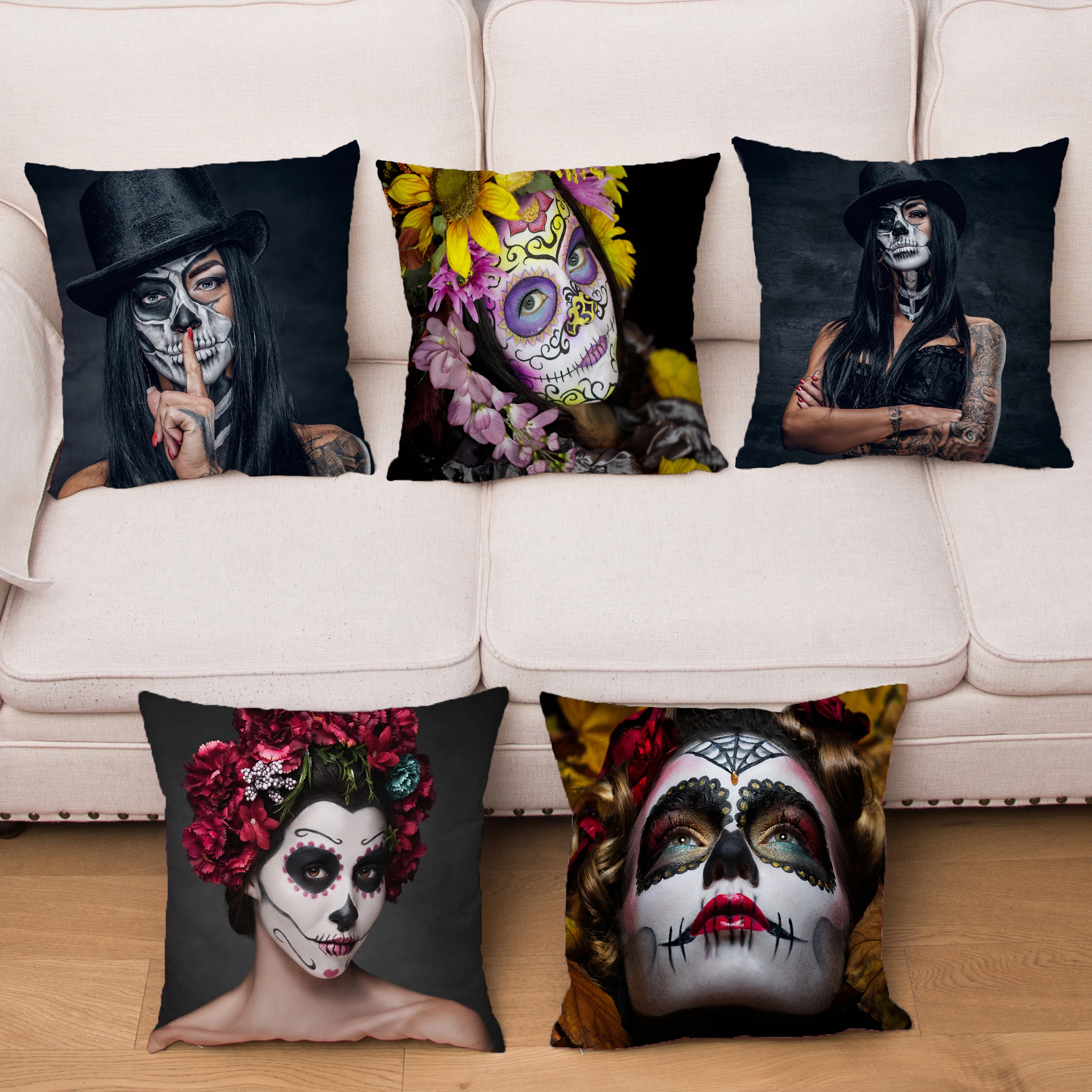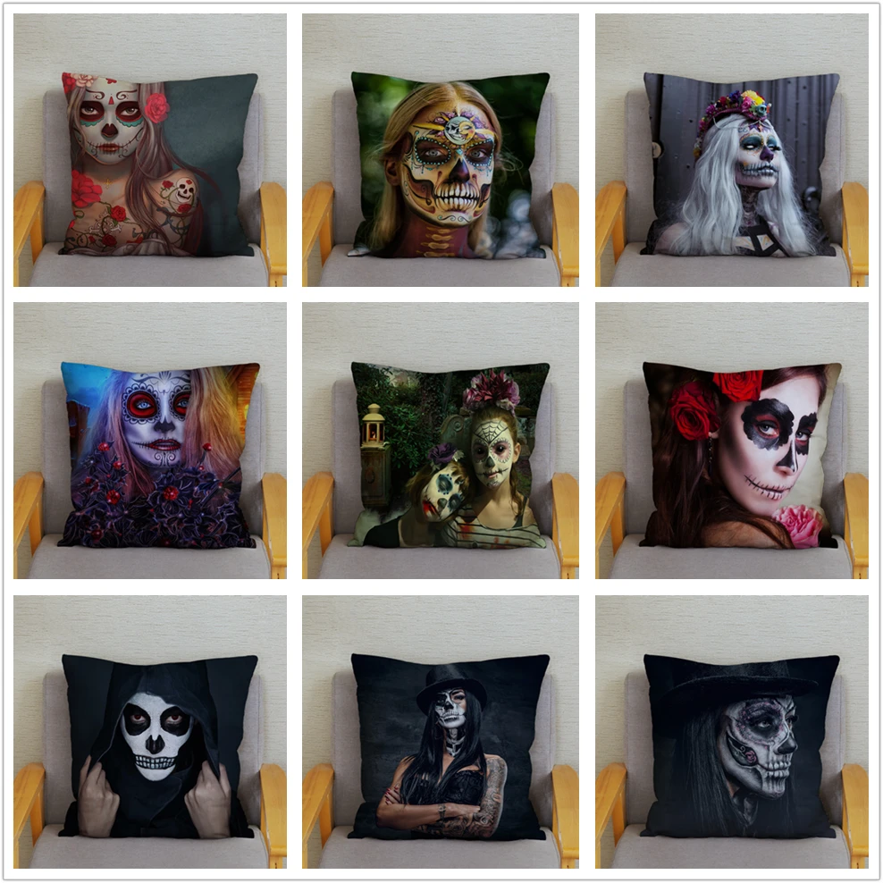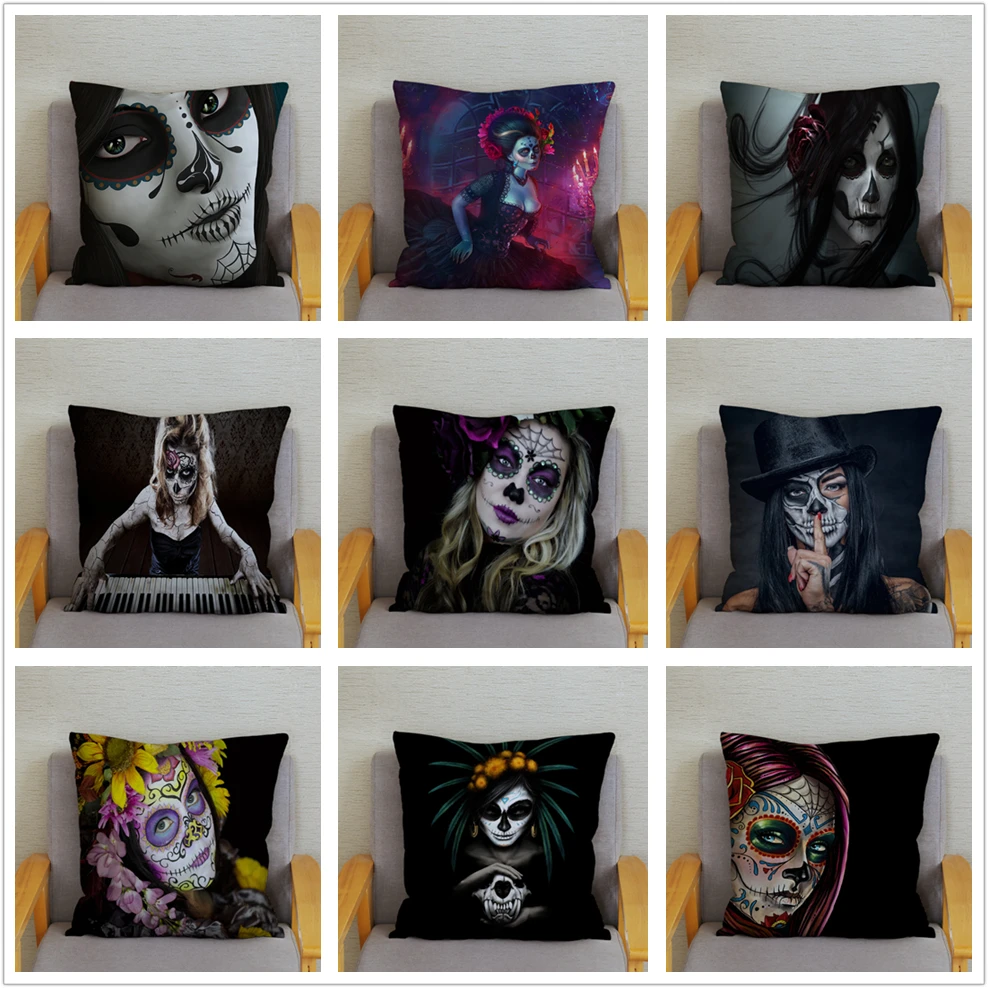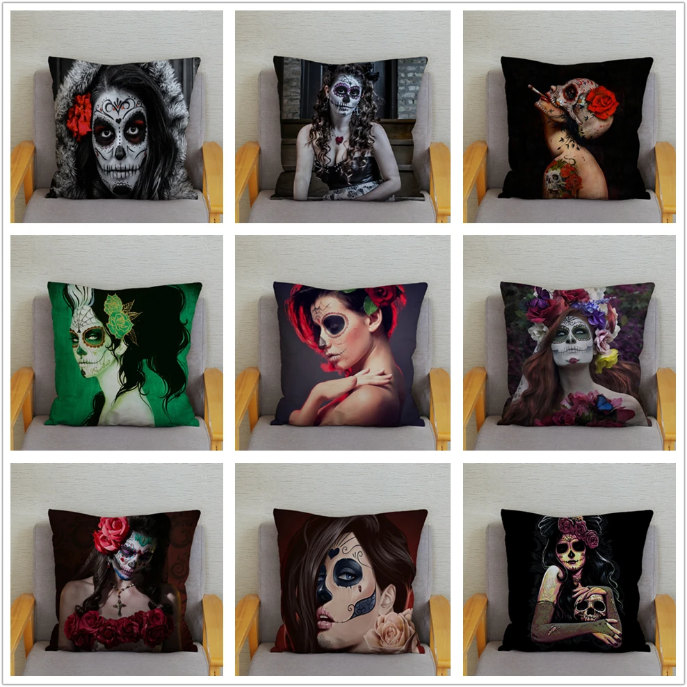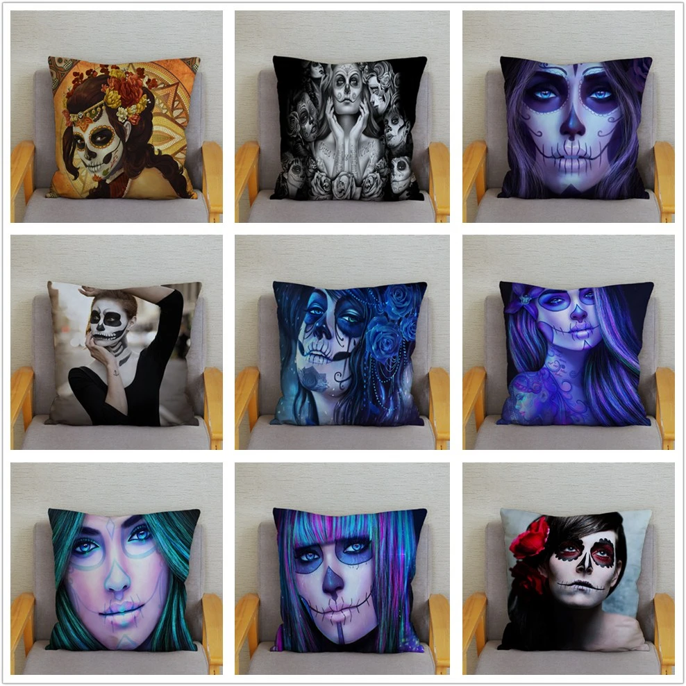 Квадратная наволочка с рисунком Дня мертвых женщин, наволочка с рисунком сахарного черепа, мягкие разноцветные чехлы для дивана, домашний декор