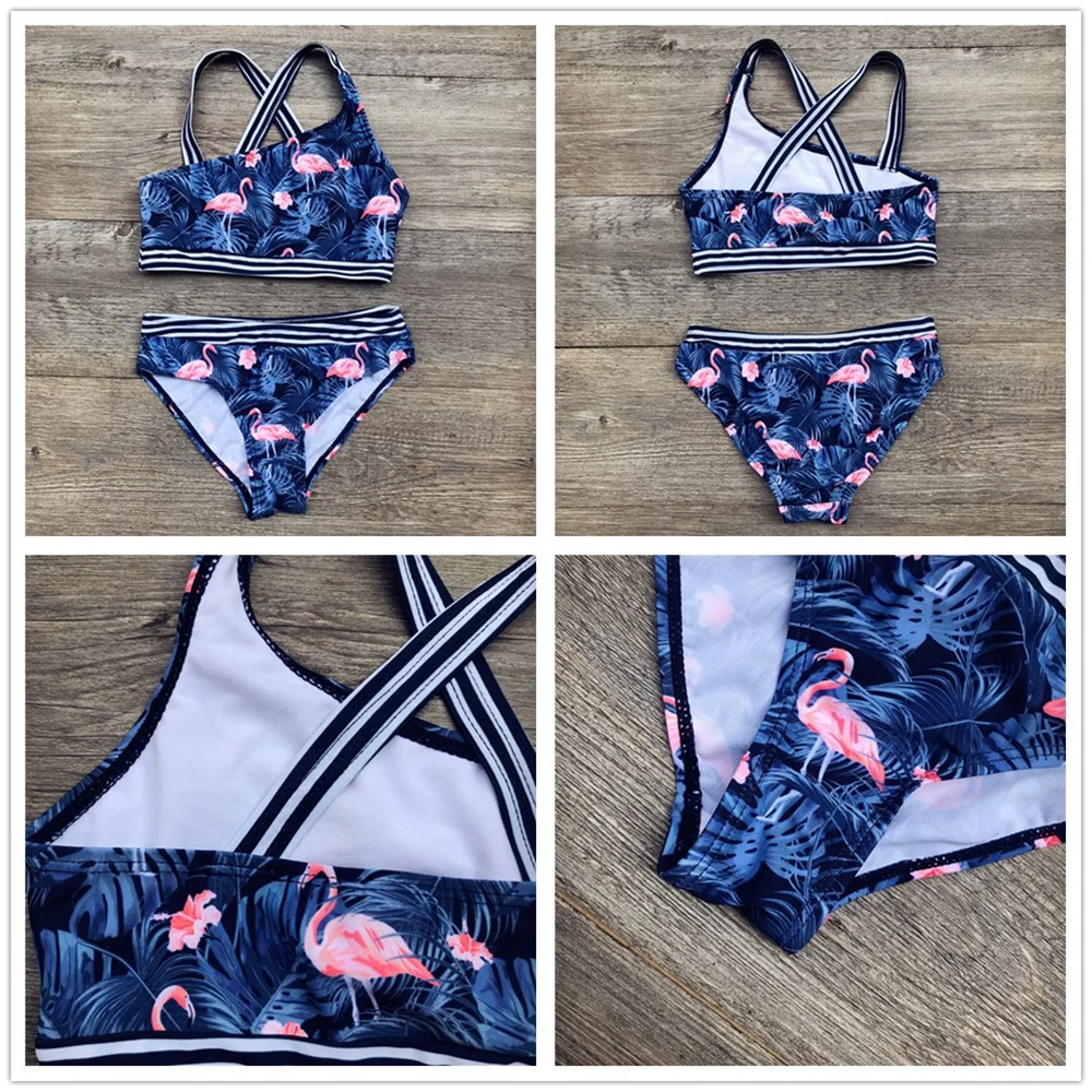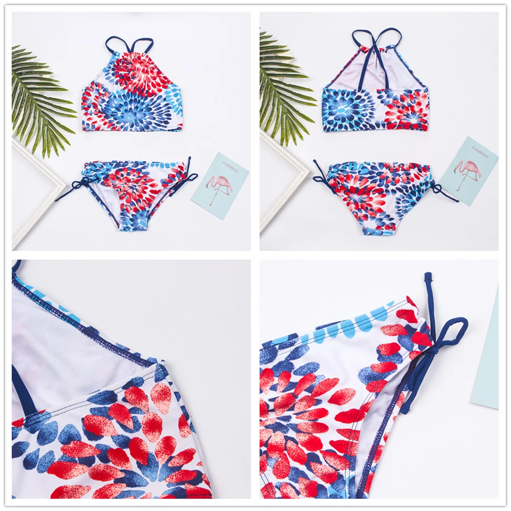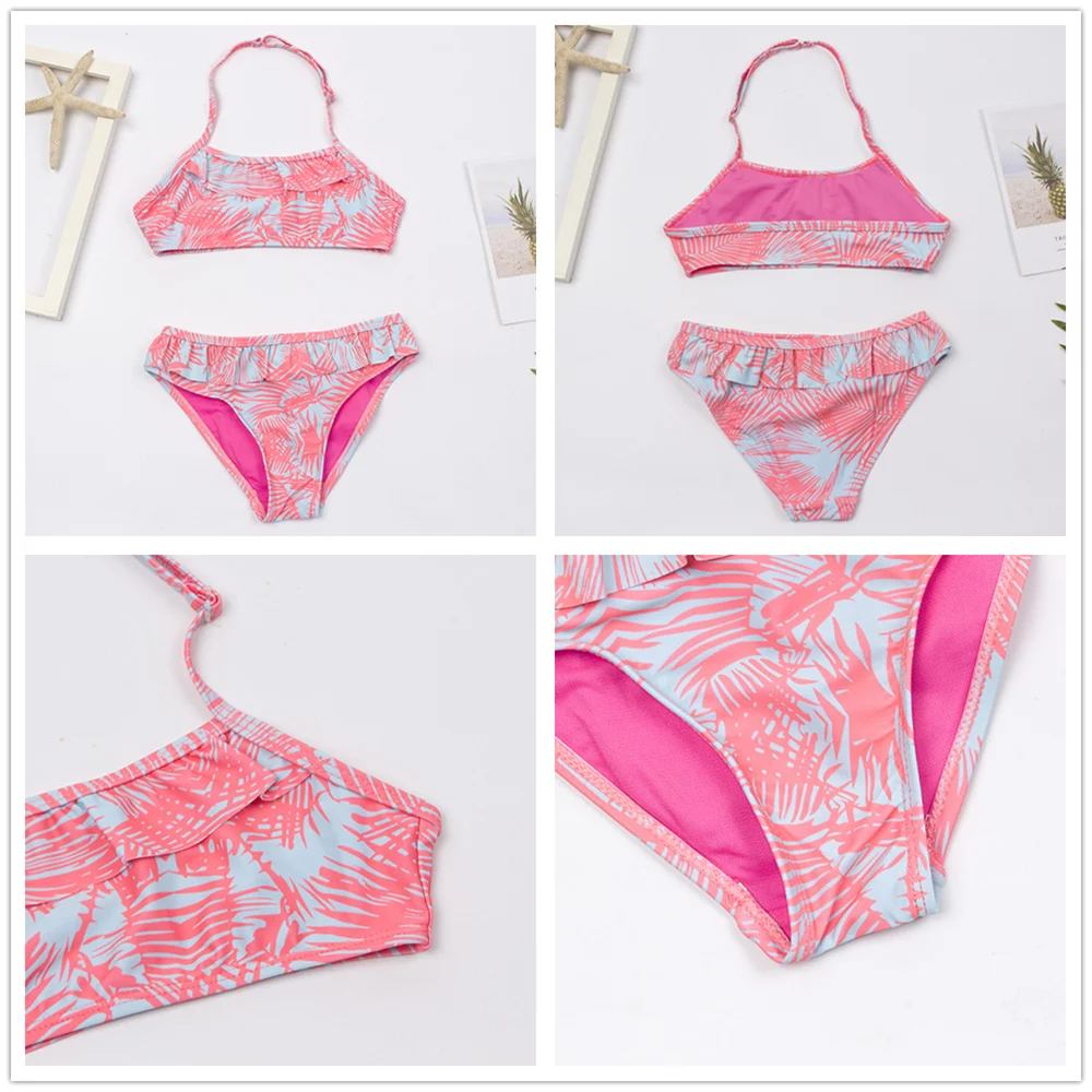 Комплект бикини для девочек с принтом перьев, новинка 2022, детский купальник-бандаж, летний детский купальник из двух предметов, бикини, A298