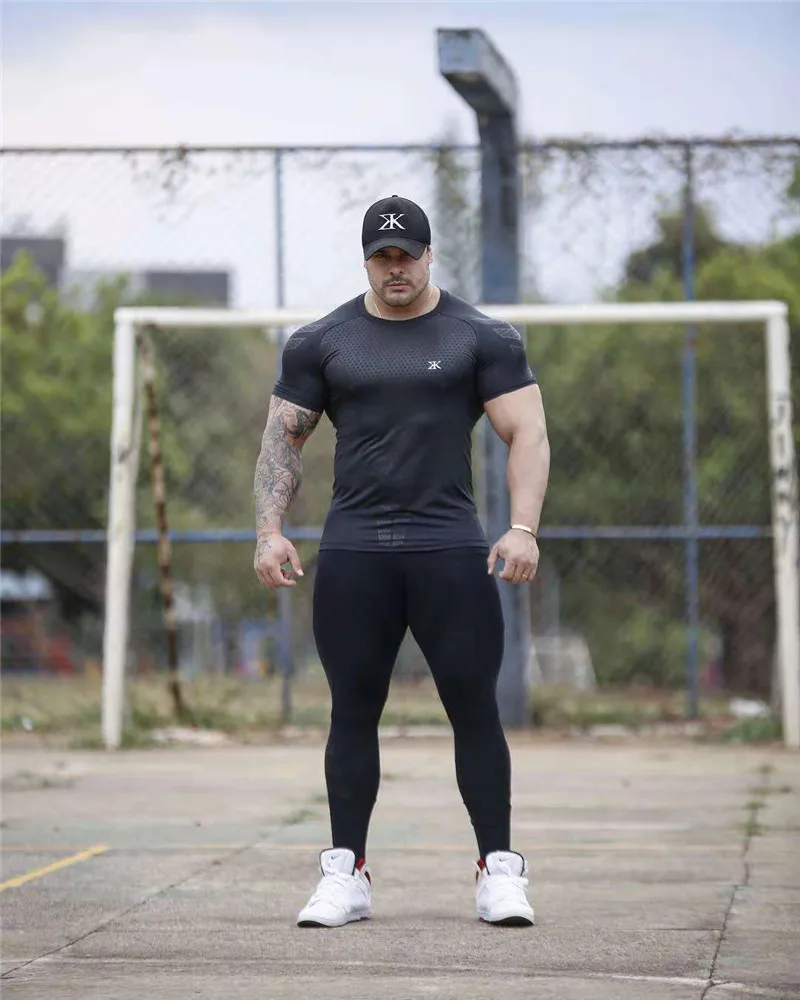 Мужская Фитнес-футболка, облегающая эластичная футболка для бодибил...