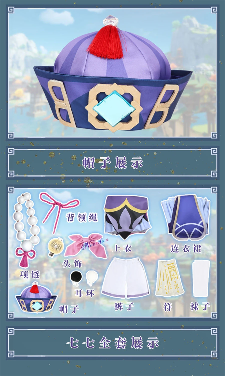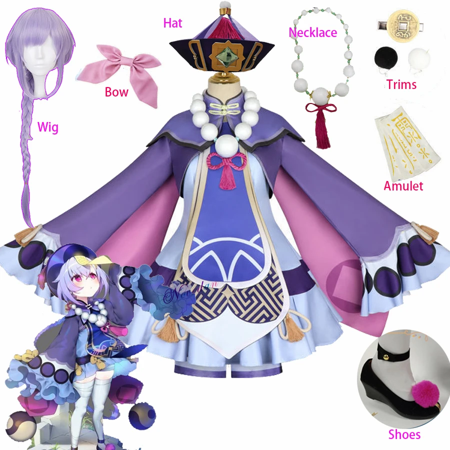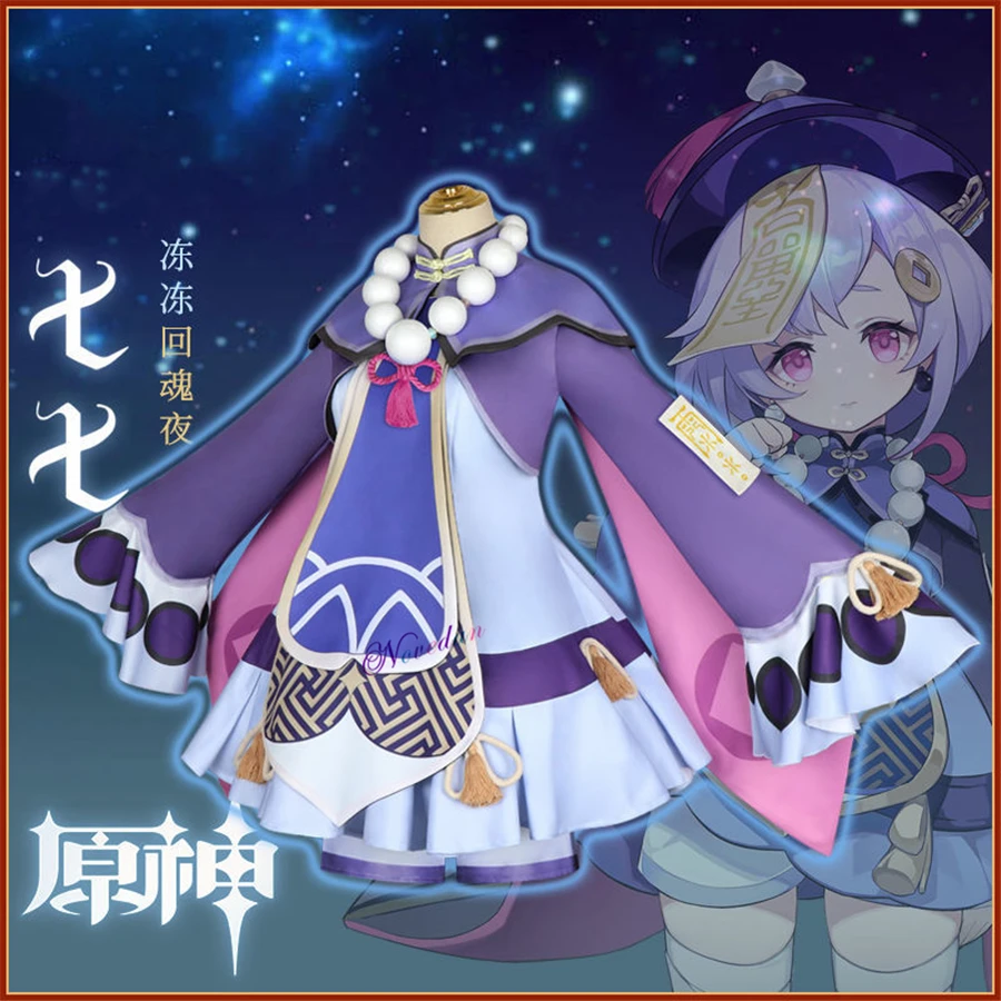 Костюм для косплея Project Qiqi Genshin Impact зомби, платье для девочек, шляпа, обувь, парик аниме, одежда для Хэллоуина, Рождественский костюм для женщин
