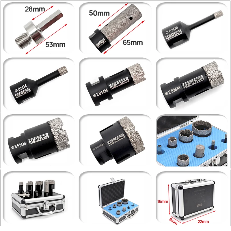 DT-DIATOOL 1 Набор алмазных корончатых сверл, наборы сверлильных коронок, пила, резак, фрезы на палец для фарфоровой плитки, керамической резьбы M14