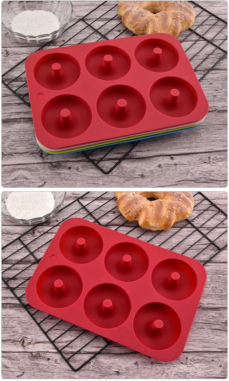Силиконовая антипригарная форма в виде пончика с 6 полостями, термостойкая многоразовая Складная форма в виде пончиков, яркий мягкий инструмент