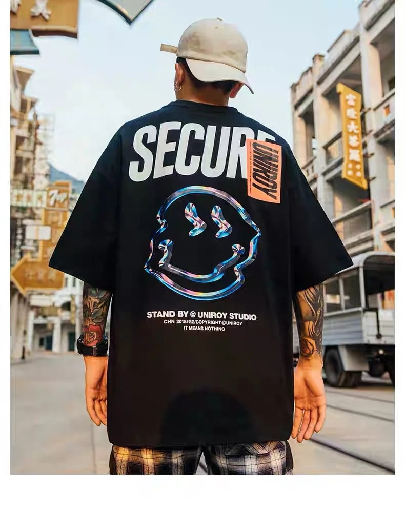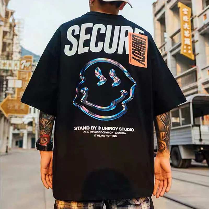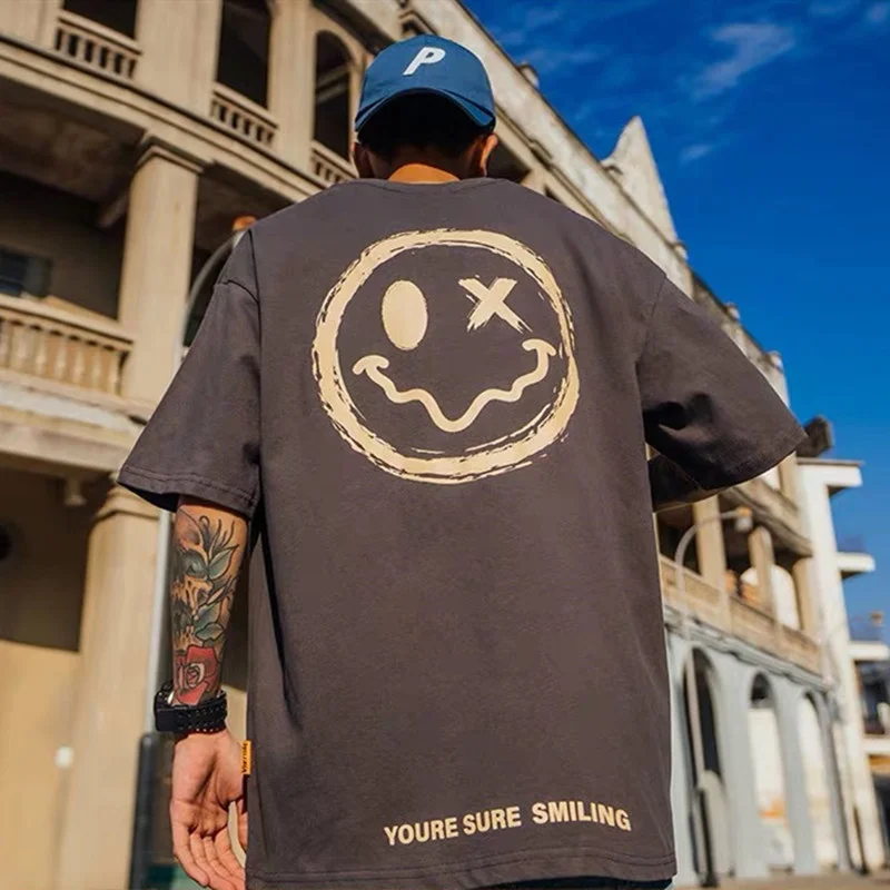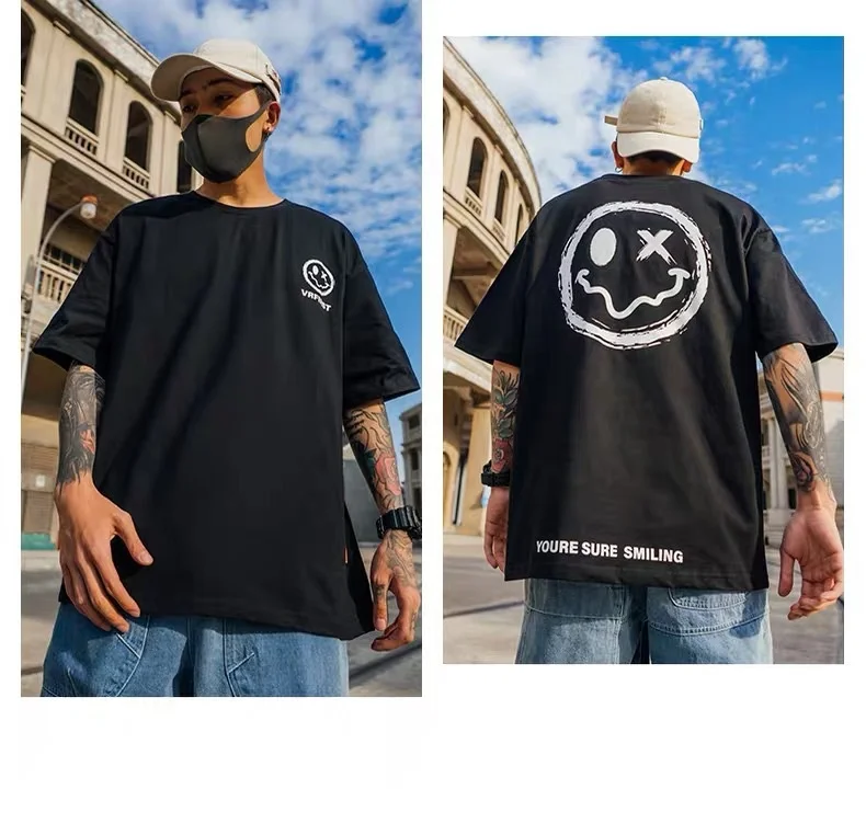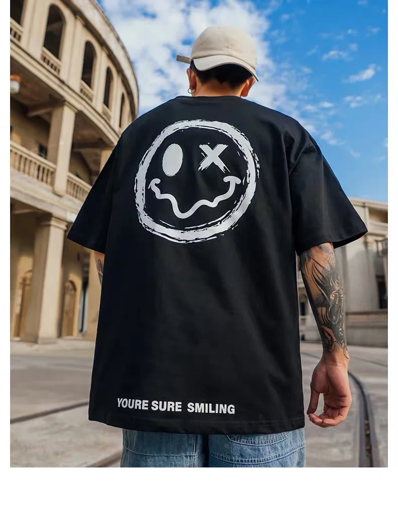 Футболка мужская с принтом в стиле хип-хоп, уличная одежда с смайли...