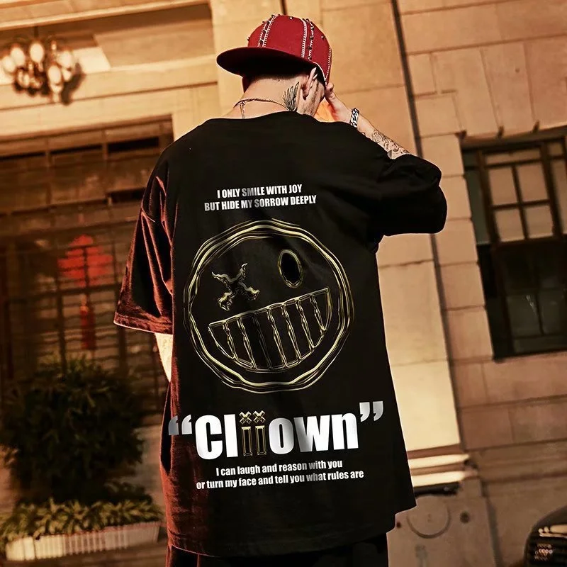 Летняя новая футболка с принтом улыбки, повседневная одежда, футбол...