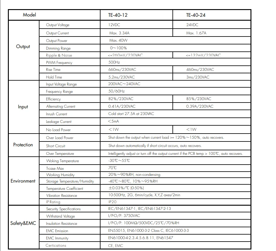 Номер моделиTE-40-12 / TE-40-24 / TE-7512 / TE-7524