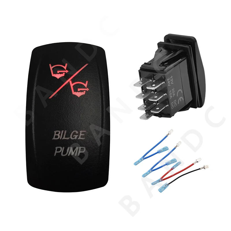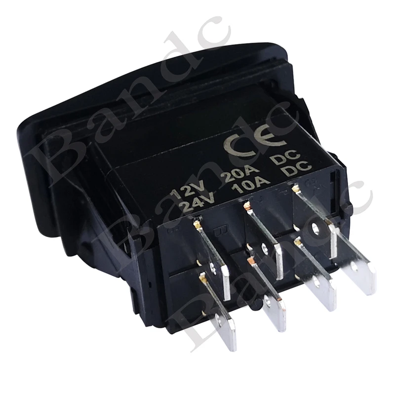 Характеристика: 7 контактов on-off-on DPDT (Двухполюсный двойной бросок) LaseR-Etched кулисный переключатель с двойным встроеннымКрасныйСветодиодные фонари, номинальный ток-20 ампер/12 В-10 ампер/24 В постоянного тока.