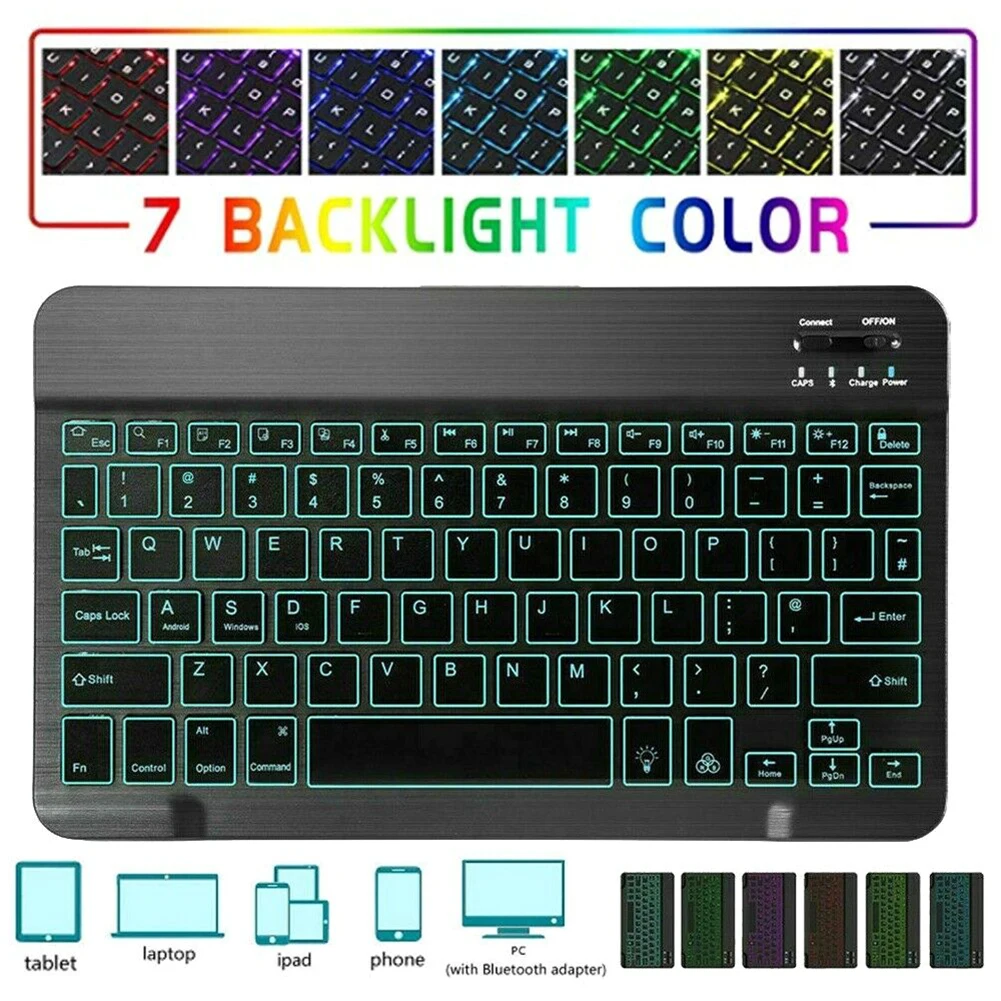 Чехол с беспроводной клавиатурой и подсветкой 7 цветов для Samsung Galaxy Tab A7 10,4 дюйма 2020 T505 T500, чехол для планшета из искусственной кожи со слотом для ручки