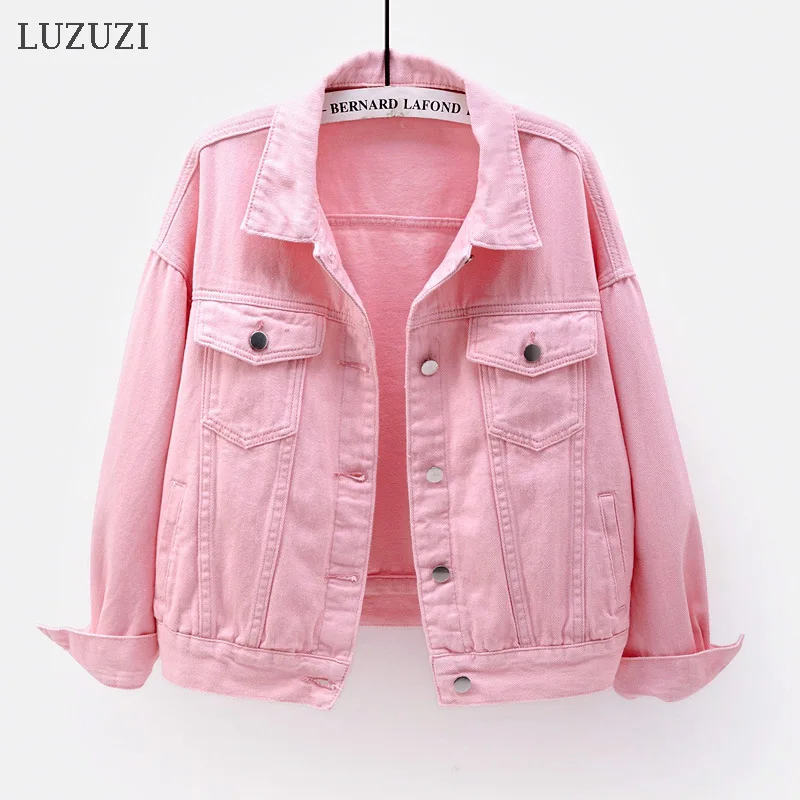 LUZUZI, яркие цвета, женская джинсовая куртка, весна-осень, Короткое женское пальто, плюс размер, джинсовые куртки, Корейская Повседневная Свободная верхняя одежда