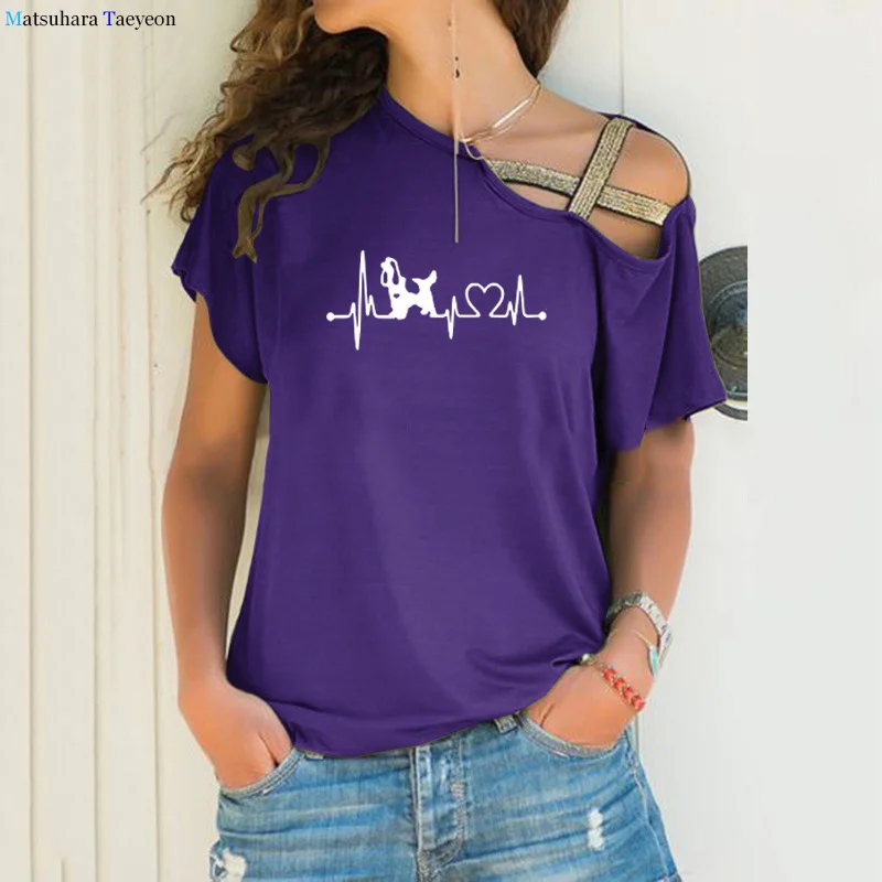 Футболка женская хлопковая с косым плечом, модная пикантная рубашка...