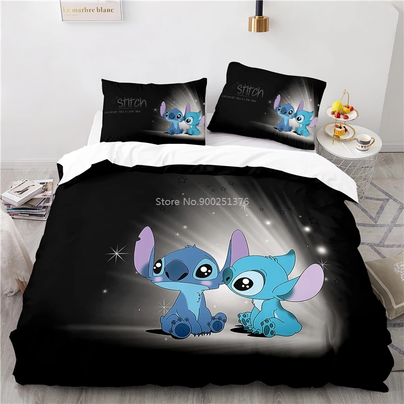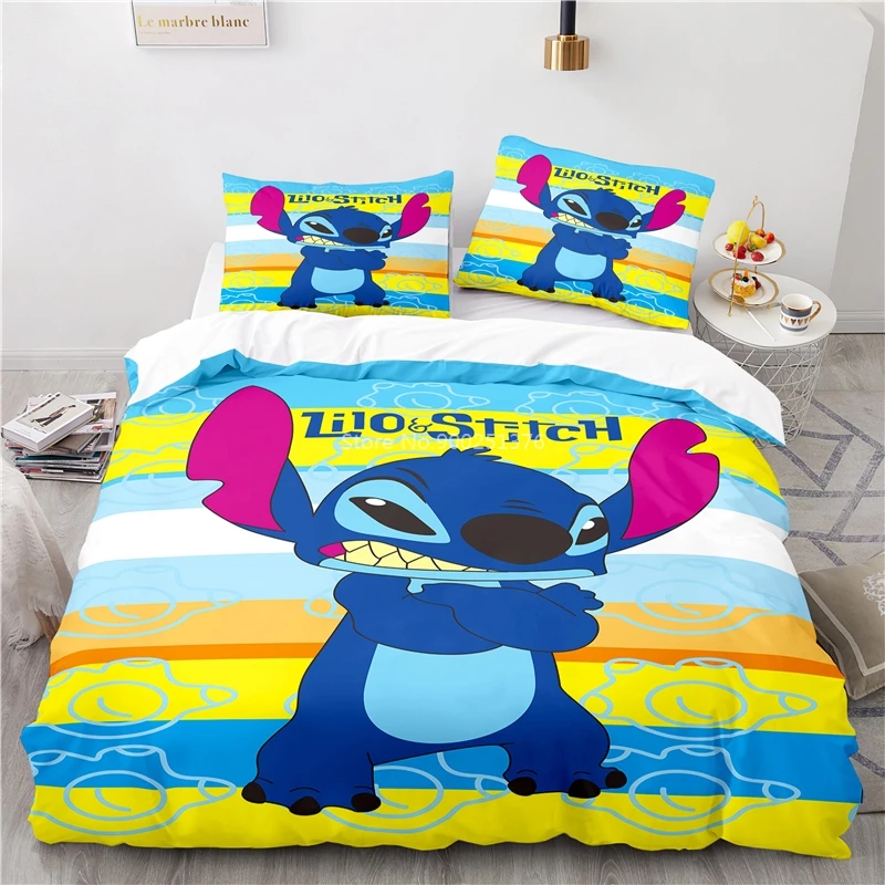 Disney с милыми изображениями мультяшных персонажей Стич постельное белье Queen Комплект постельного белья королевского размера из мягкой, стеганое одеяло, размеры: комплект для обычной двухстальной Стёганое одеяло наволочка набор покрывало