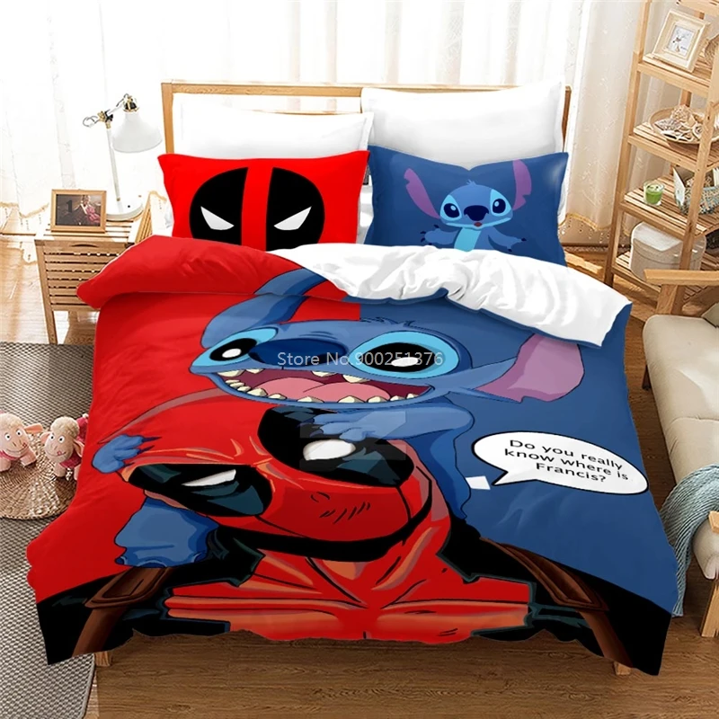 Disney стильная футболка с изображением персонажей видеоигр Лило и Стич пододеяльник набор Queen Комплект постельного белья королевского размера, мягкие постельные принадлежности, домашний текстиль для детей; Одежда для мальчиков и девочек