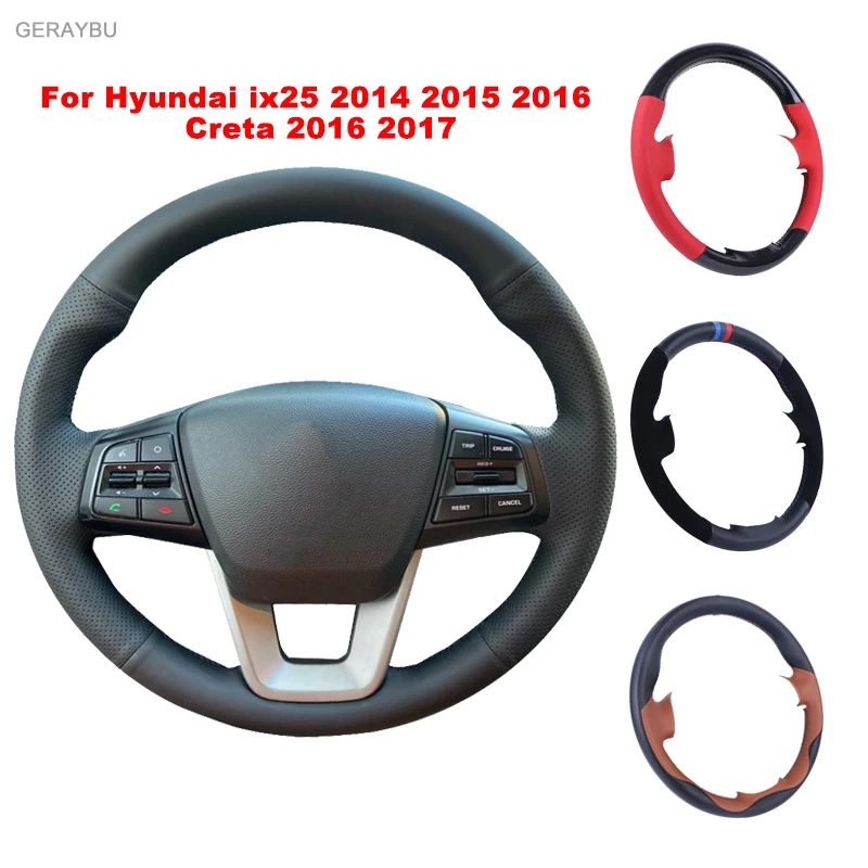 GERAYBU изготовленный на заказ DIY черный искусственная кожа сшитый вручную чехол рулевого колеса автомобиля для Hyundai Ix25 2014 2015 2016 Creta 2016 2017