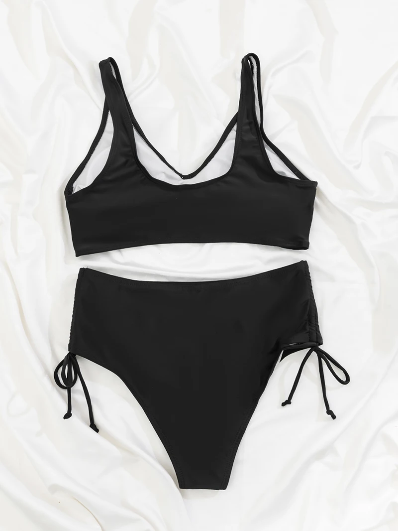 Винтажная однотонная одежда для плавания из двух предметов, бикини с высокой талией, купальный костюм для женщин, новинка 2022, пляжная одежда для плавания с широким ремешком
