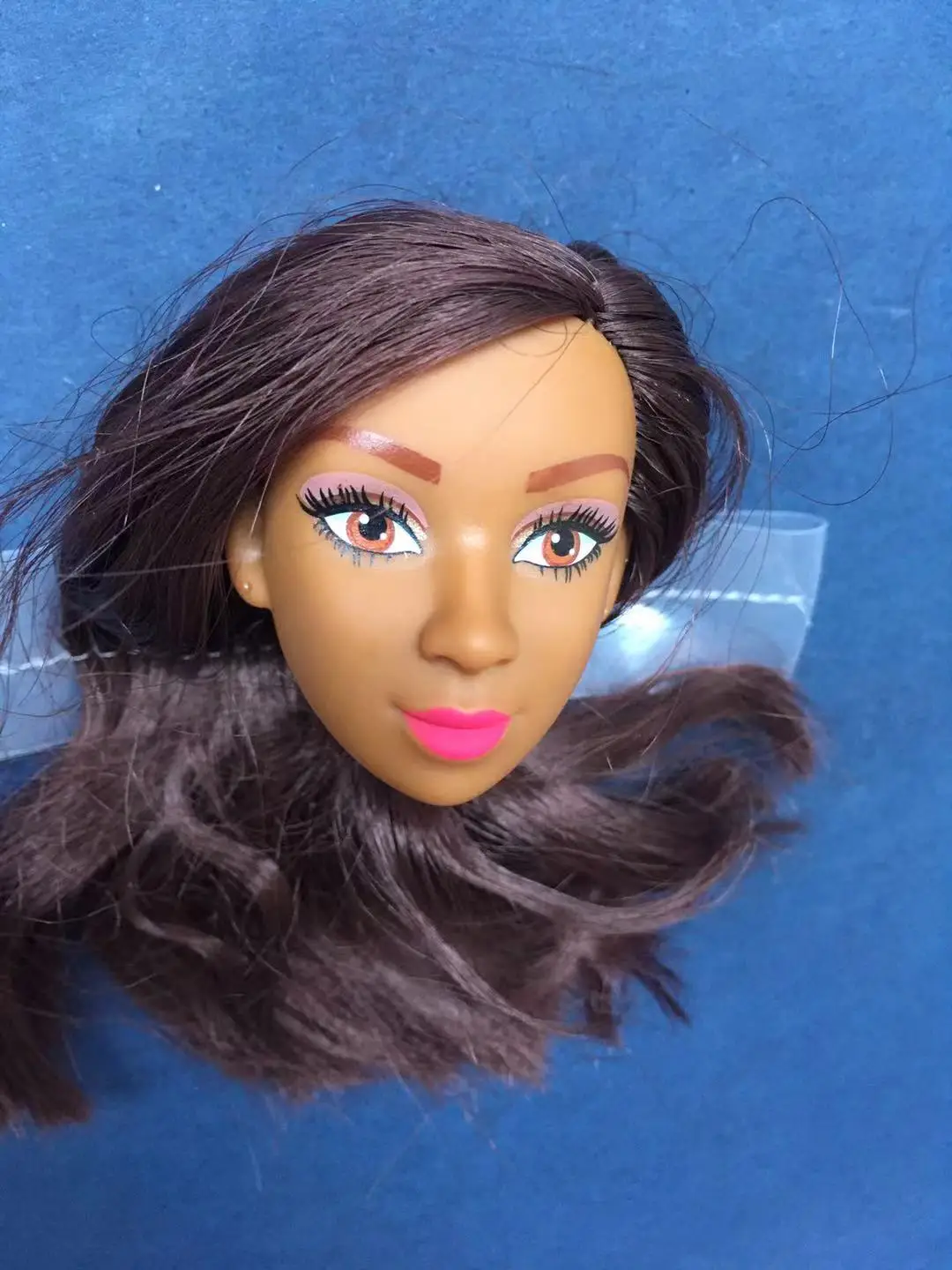 Голова куклы черная леди, изогнутая, 16, аксессуары для кукол, коричневые, фиолетовые, синие волосы, коллекция Головы Куклы, редкое лицо, Хороший макияж, лицо, голова куклы