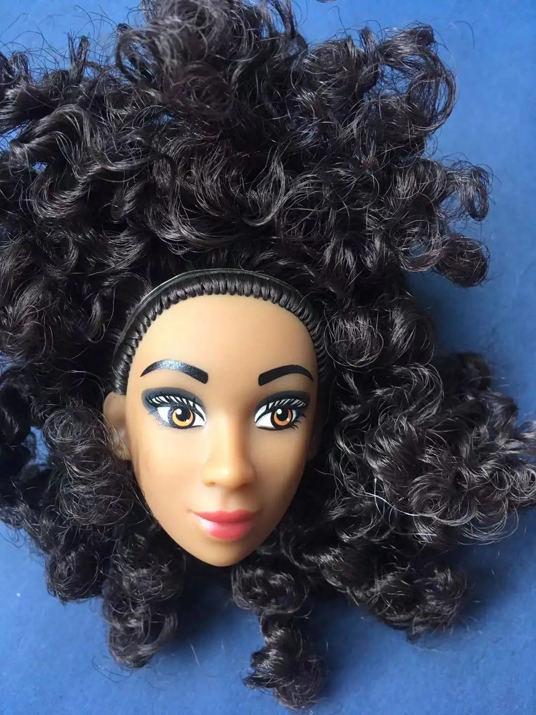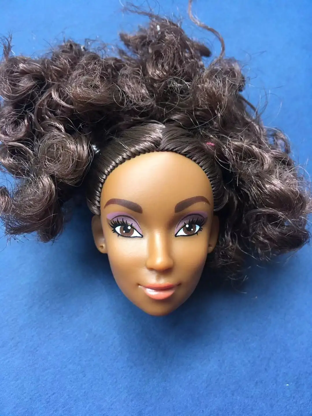 Black Lady Curve Hair Head 1/6 Doll Accessories Brown Purple Blue Hair Doll Head Collection Rare Face Good Makeup Face Doll Head