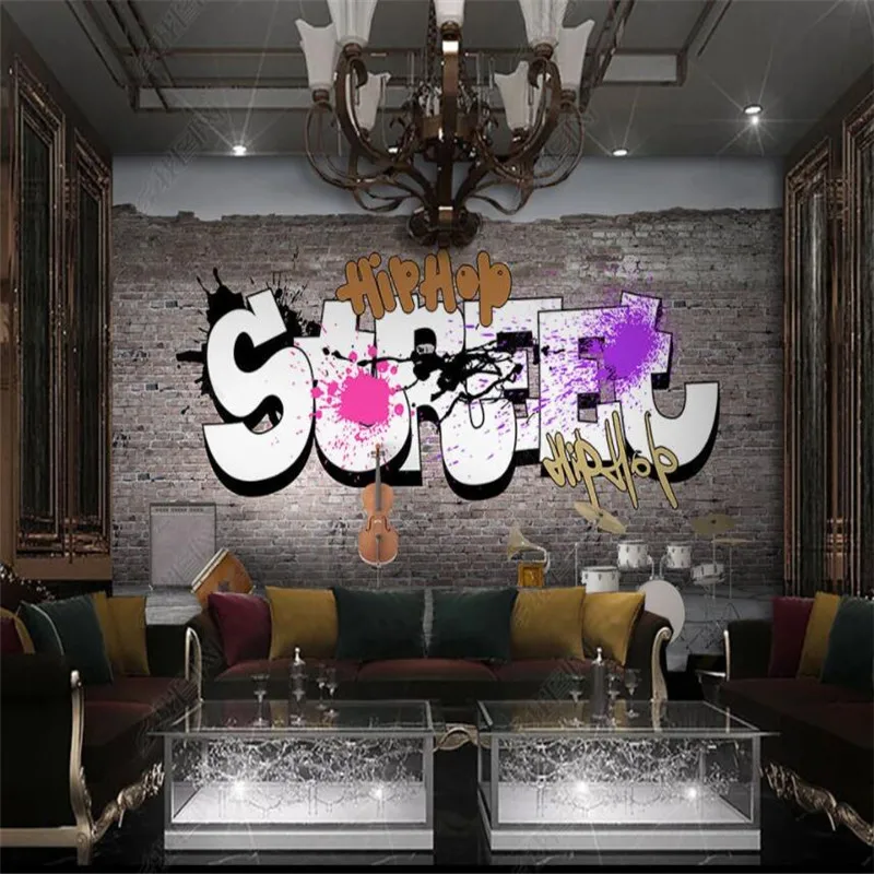 Европейские, американские уличные граффити искусство хип-хоп Рок настенная бумага 3D музыкальный бар КТВ промышленный Декор Фон настенная бумага фрески