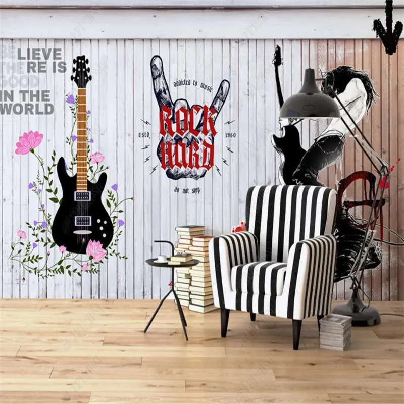 Ретро ностальгическая ручная роспись рок настенная бумага s промышленная декоративная гитара KTV бар фон настенная бумага papel де parede 3d