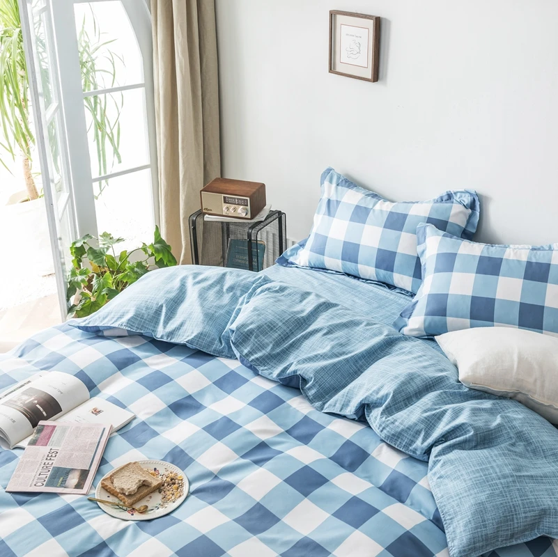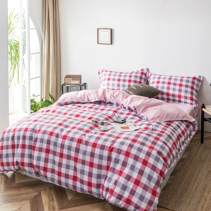 Комплект постельного белья в клетку для пикника, скандинавские простыни, Королевский размер, большой размер, розовые, синие, кавайные, милые, черные, белые
