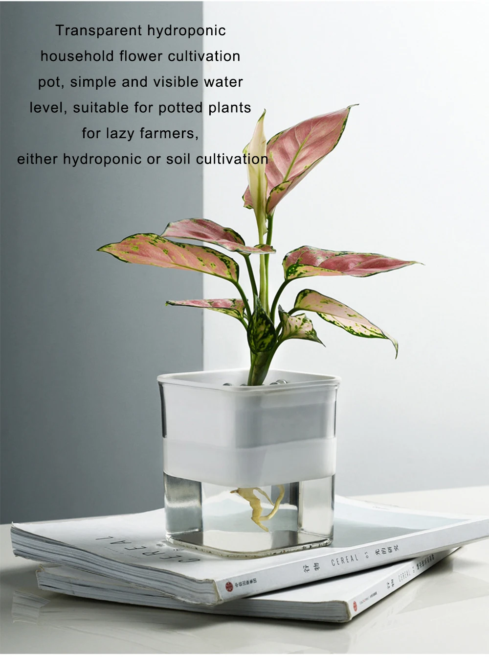 Прозрачный гидропонный домашний цветочный горшок для выращивания, простой и Видимый уровень воды, подходит для горшечных растений для ленивых знаменитостей, или для выращивания гигрипоники или почвы