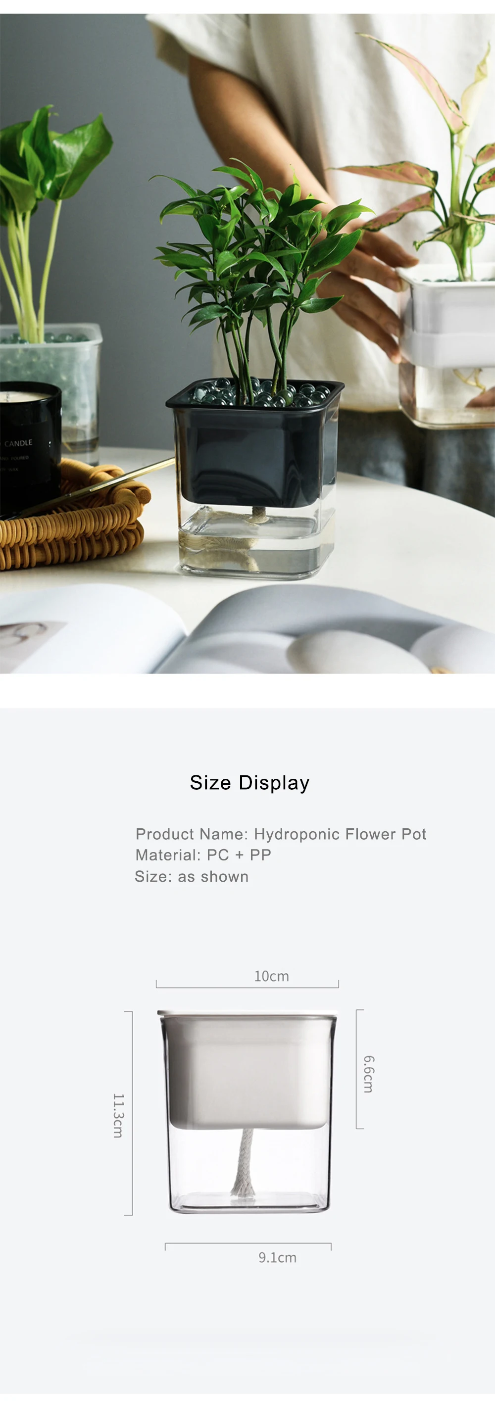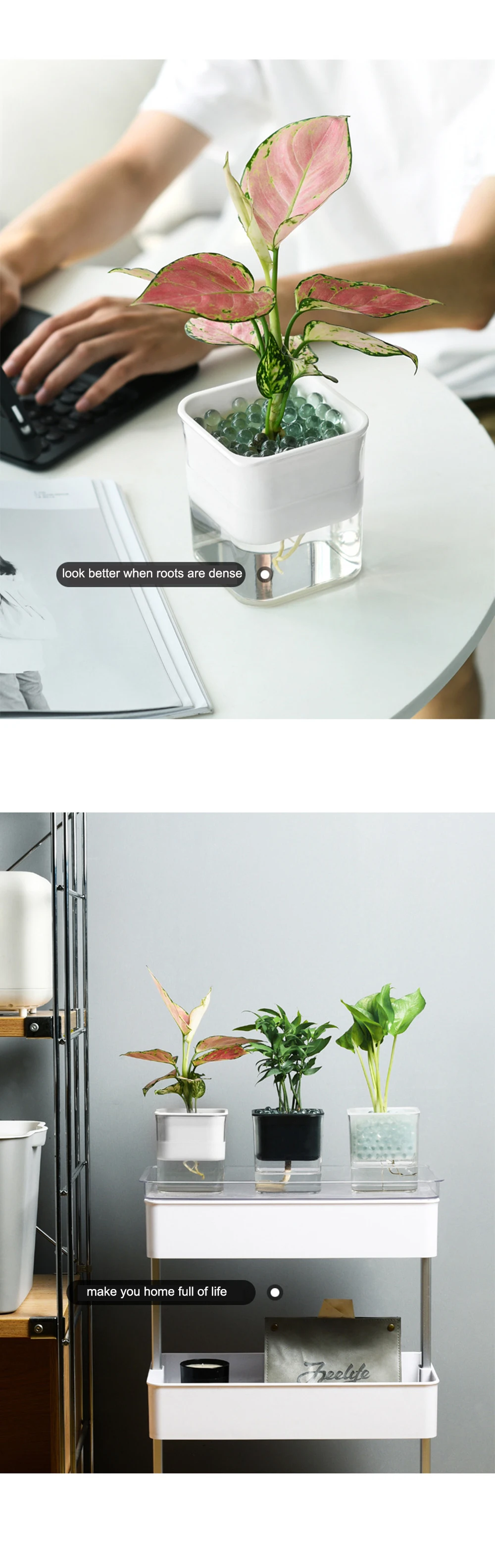 Маленький горшок для растений с баком для воды, самополив, пластиковый квадратный гидропонный горшок, горшок для цветов, Настольный украшения для дома
