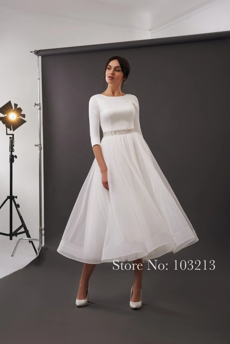 Платье невесты, атласное, с полурукавами, ТРАПЕЦИЕВИДНОЕ, до щиколотки
