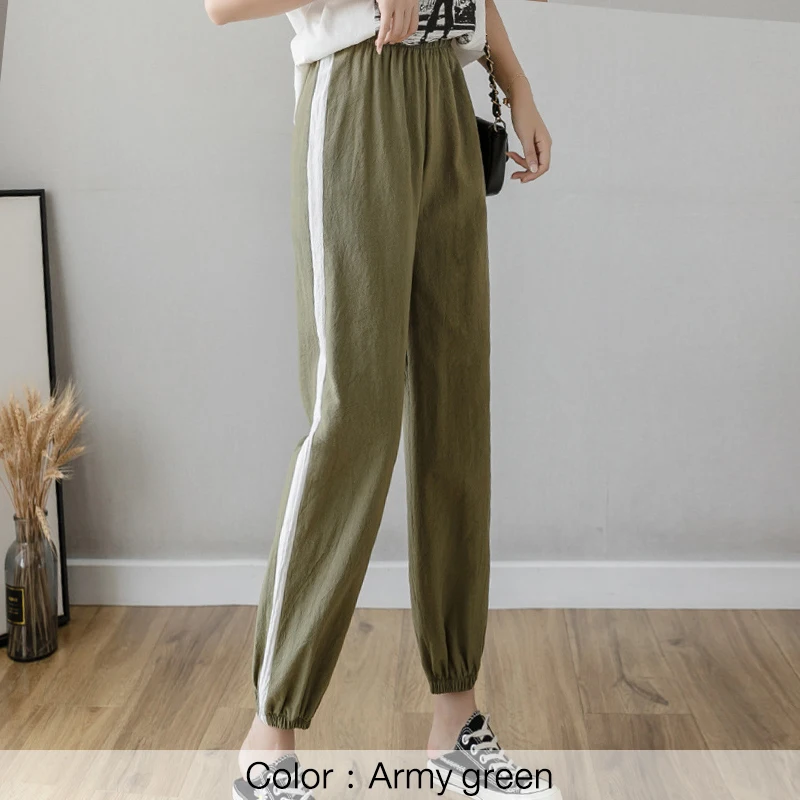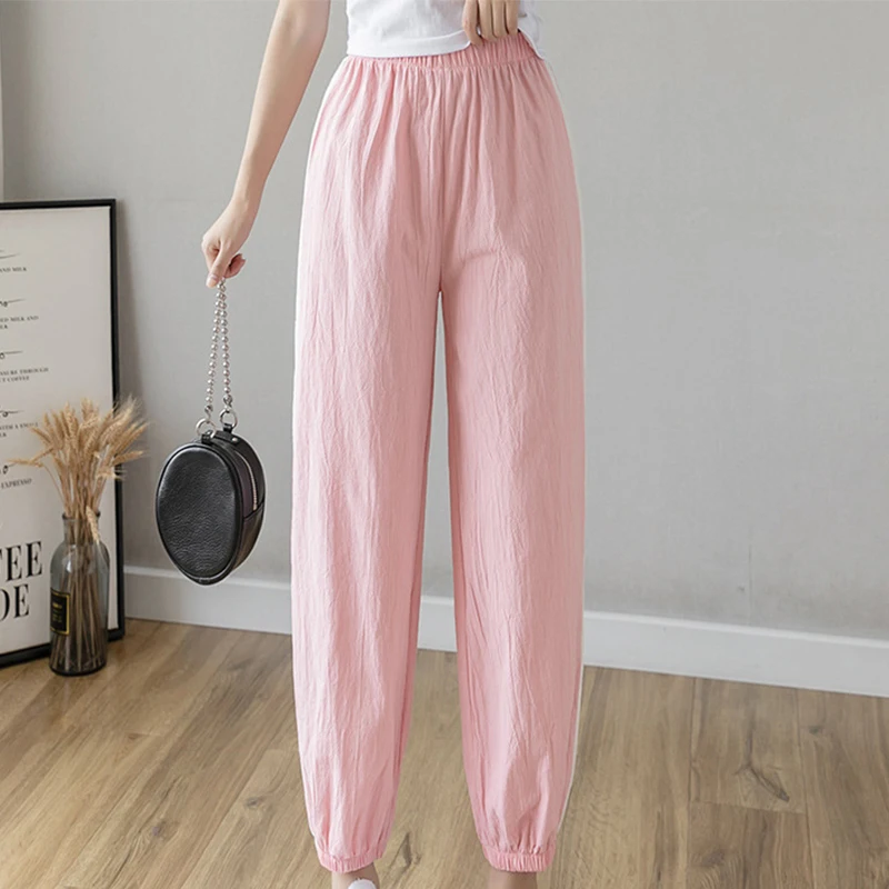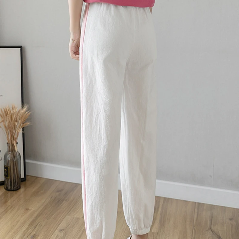 Женские укороченные брюки, хлопковые льняные брюки, Шаровары свобод...