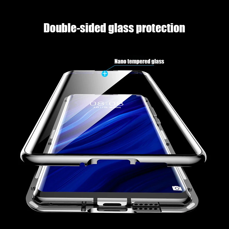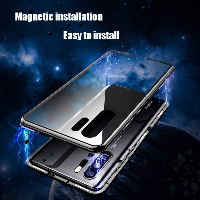 Чехол для Huawei P20 P40 Mate 40 30 20 Pro Honor 10 Lite 8X 9X Y9 Prime P Smart 2019, магнитный двухсторонний металлический стеклянный чехол для телефона HD