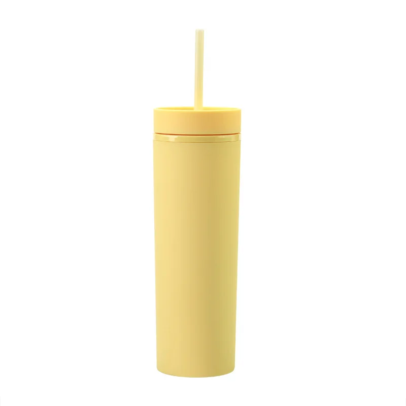 Двойные стенки узкие Пластик Forsted бутылка для воды матовые 16oz прямо чашка изолированы круглая кружка для кофе с трубочкой