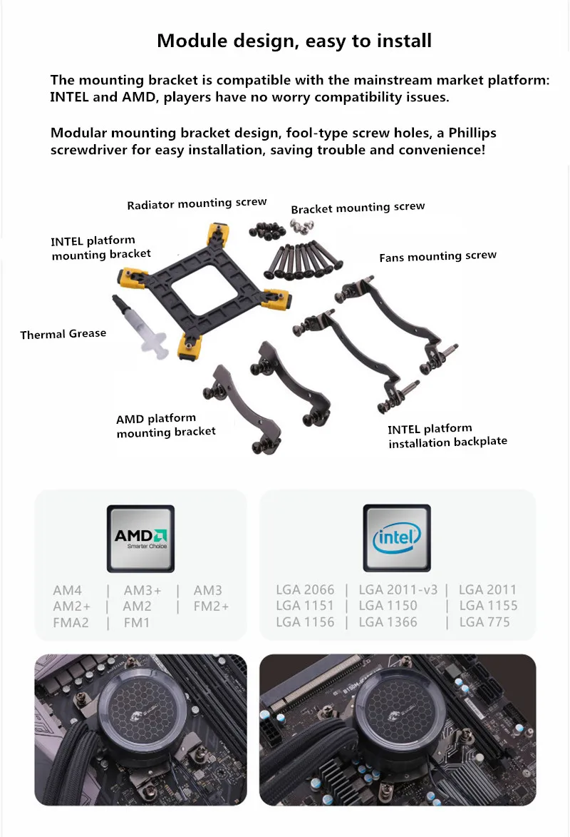 Детали для водяного охлаждения ПК Bykski, кулер для ЦП AIO, Водяной...
