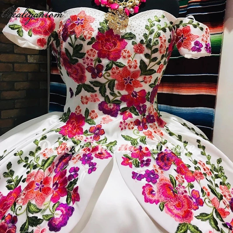 Bealegantom Паффи Вышивка Пышное Платье с открытыми плечами сладкий 15 Quinceanera платье длинные Мексиканская платье для выпускного вечера вечерние платья Vestidos De 15 Anos
