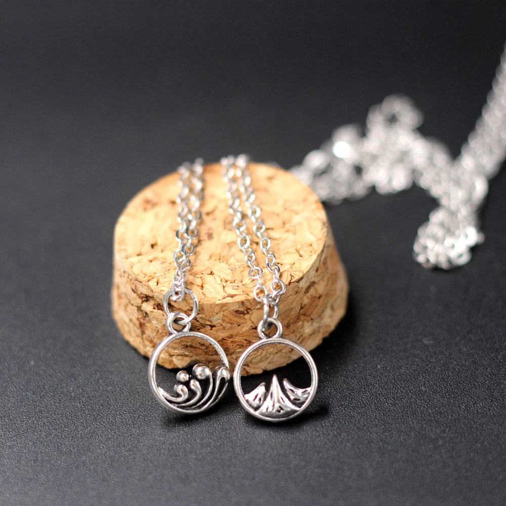 Парные ожерелья из нержавеющей стали, 1 пара, простые Подвески океанской горы, чокер, парные украшения для мужчин, женщин, мужчин, подарки на день Святого Валентина