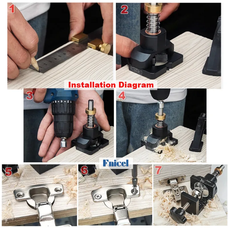 Дюбель-зажим предназначен для установки петель двери мебели. Помогает сверлить отверстие в центре. Материал-алюминиевый сплав 6061, обработка Анодирование поверхности