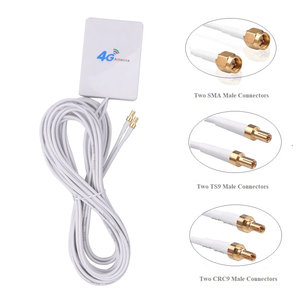 Частота: 700-2700 МГцКоэффициент усиления: 28dbiВарианты Connetcor: TS9/ SMA/ CRC9Максимальная входная мощность: 50 ВтТип кабеля: двойной RG174Длина кабеля: около 3 мУпаковка:1 x CRC9/SMA/TS9 4G LTE антеннаРазъем TS9 Подходит для:Vodafone R215, Vodafone R212, Vodafone K5150, Vodafone K5005, Vodafone K5006Z, Vodafone R226, Vodafone CarStick W5101ZTE MF980, ZTE MF287 3neo, ZTE MF821D, ZTE MF821,ZTE MF910, ZTE MF90, ZTE MF93E,ZTE MF91D, ZTE MF91, ZTE MF91T, ZTE MF93D,ZTE MF91S,ZTE Flare ZTE MF827, ZTE MF825C, ZTE MF95, ZTE MF75, ZTE MF825, ZTE MF831, ZTE MF823, ZTE MF279, ZTE MF971VNetgear Aircard 340u, Netgear Aircard 341u, Sierra Aircard 313u,Sierra Aircard 320u, Sierra Aircard 330u, Sierra 754s, Sierra Aircard 760s, Sierra Aircard 762s, Sierra Aircard 763s, sierra Aircard 770s, Netgear Aircard 771s, Netgear 782s, Netgear 781s, Netgear 785s, Netgear 778s, Netgear 790S (AC790S), Netgear 779s(AC779S), Netgear AC791L(Verizon Jetpack), Netgear Aircard AC810S(Telstra WiFi 4G Advanced III), Netgear LB1111, Netgear Nighthawk M1 MR1100, netgear Aircard AC800S (Optus 4G Wi-Fi модем (Cat 9) AC800S)Huawei UML397, Huawei E397, Huawei E398, Huawei E392, Huawei E8278, Huawei E5373, Huawei E5775, Huawei E5786, Huawei E5776, Huawei E589, Huawei E5372, Huawei E5375, Huawei E5375, 377 huawei EC3372-871, Huawei E8372, Huawei E5577, Huawei E5577C, Huawei E5573, Huawei E5787, Huawei E5785,Huawei B528s-23a(Vodafone GigaCube), Huawei B618,SMA Подходит для:-ZTE MF28G, ZTE MF29T, ZTE MF29S2, ZTE MF28D, ZTE MF283, ZTE MF285-Huawei E5186, HUAWEI B890, Huawei E5175, Huawei B880, Huawei B310, Huawei B315, Huawei B593u-12, Huawei B593s-22, Huawei B593u-91, Huawei B593u, Huawei E5172S-22, Huawei E5172AS-22, HUAWEI E5172, huawei B525, Huawei B612, Huawei B520s-93a, Huawei B715(B715s-23c)-Vodafone B4000, Vodafone B3500, Vodafone B3000, Vodafone B2000, Vodafone B1000-Alcatel Linkhub HH40, Alcatel Linkhub HH70, Alcatel Linkhub HH41CRC9 Подходит для:-Huawei E3276, Vodafone K5007, Huawei EC3372, Huawei E3372, Huawei E3272, Vodafone K5160 (K5160-H)