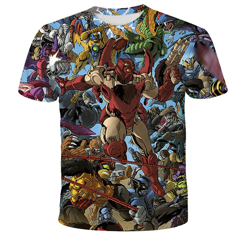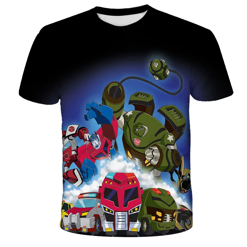Футболка с 3D-принтом для мальчиков и девочек, мультяшный топ с трансформерами, крутая уличная одежда, детская одежда, лето