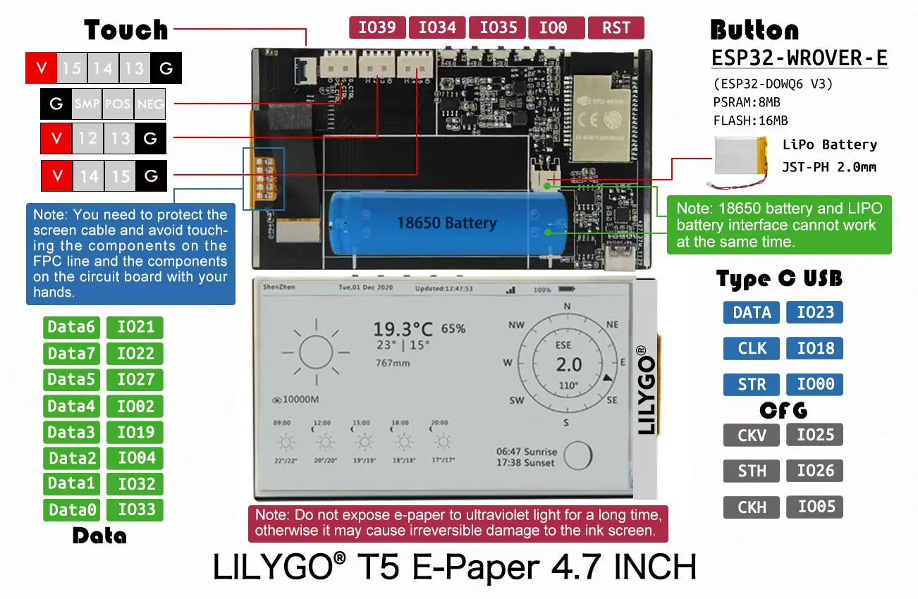 LILYGO T5 4,7-дюймовый E-Бумага есть другой вариант T5 серии электронные чернила экраны.