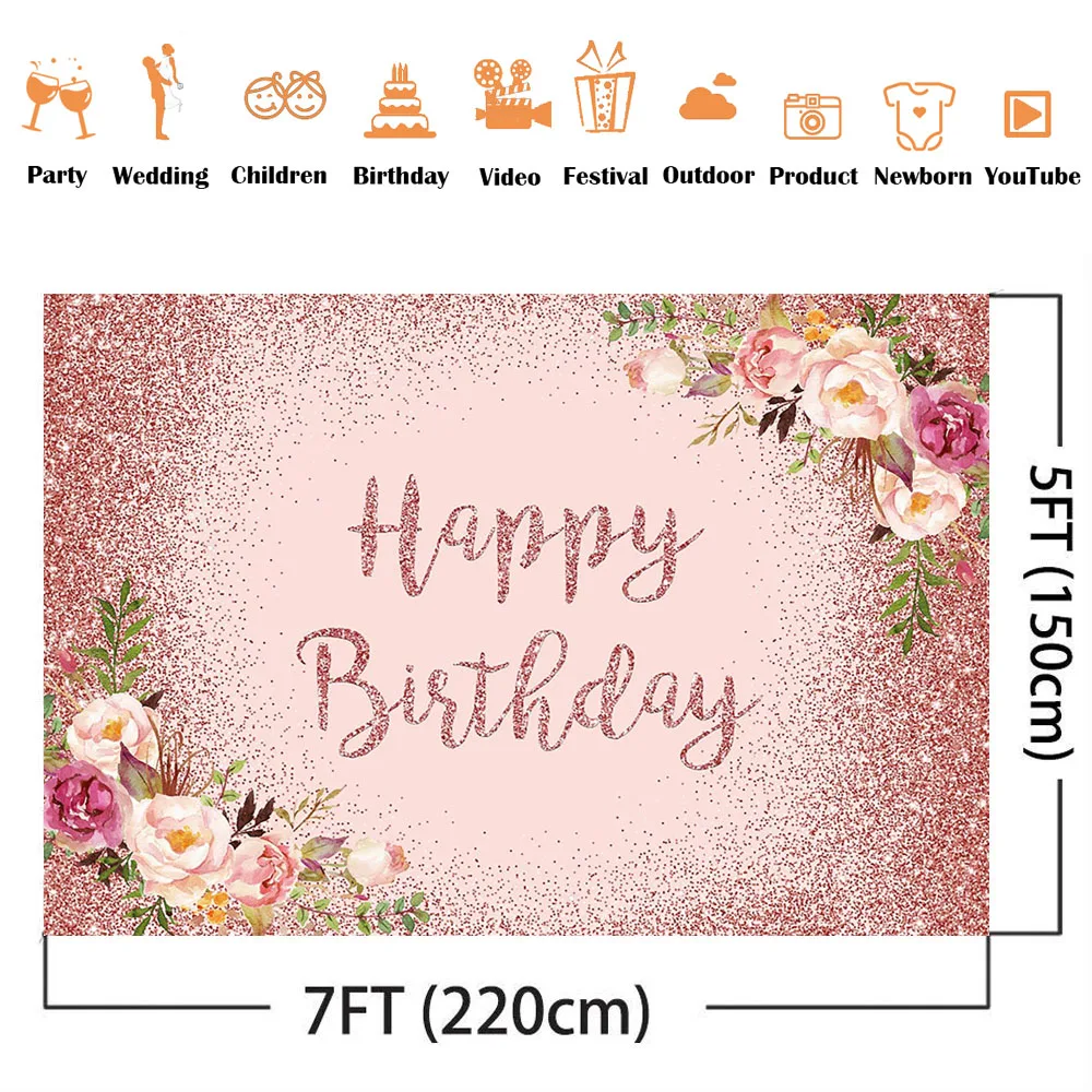 Фон с розовыми розами и блестками Happy фон для фотосъемки на день ...